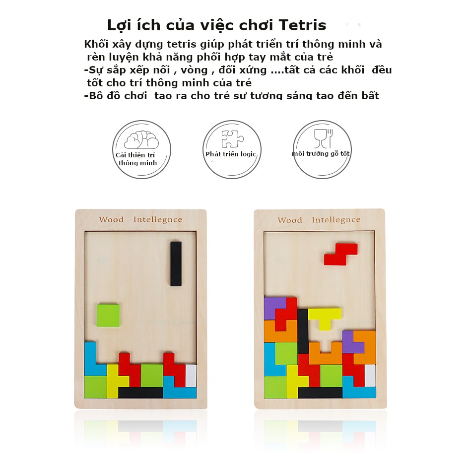 Đồ chơi xếp hình thông minh Tetris cho bé, ghép hình gỗ trẻ em 1 – 5 tuổi