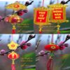 – Trên mỗi cây có thể trang trí đèn đẹp mắt nhưng không thể thiếu được thẻ bài vạn sự như ý và cầu nhung đỏ cho đúng với phong thủy