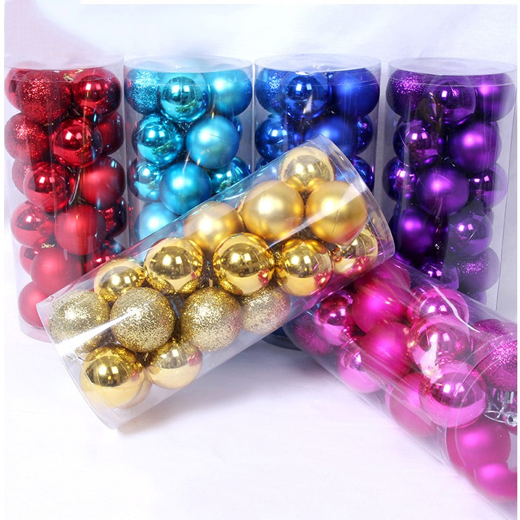 Set 24 Trái Châu Nhiều Màu Sắc Trang Trí Cây Thông Noel-3/4/6/8cm Bóng Giáng Sinh -Đồ Dùng Tiệc Giáng Sinh Năm Mới
