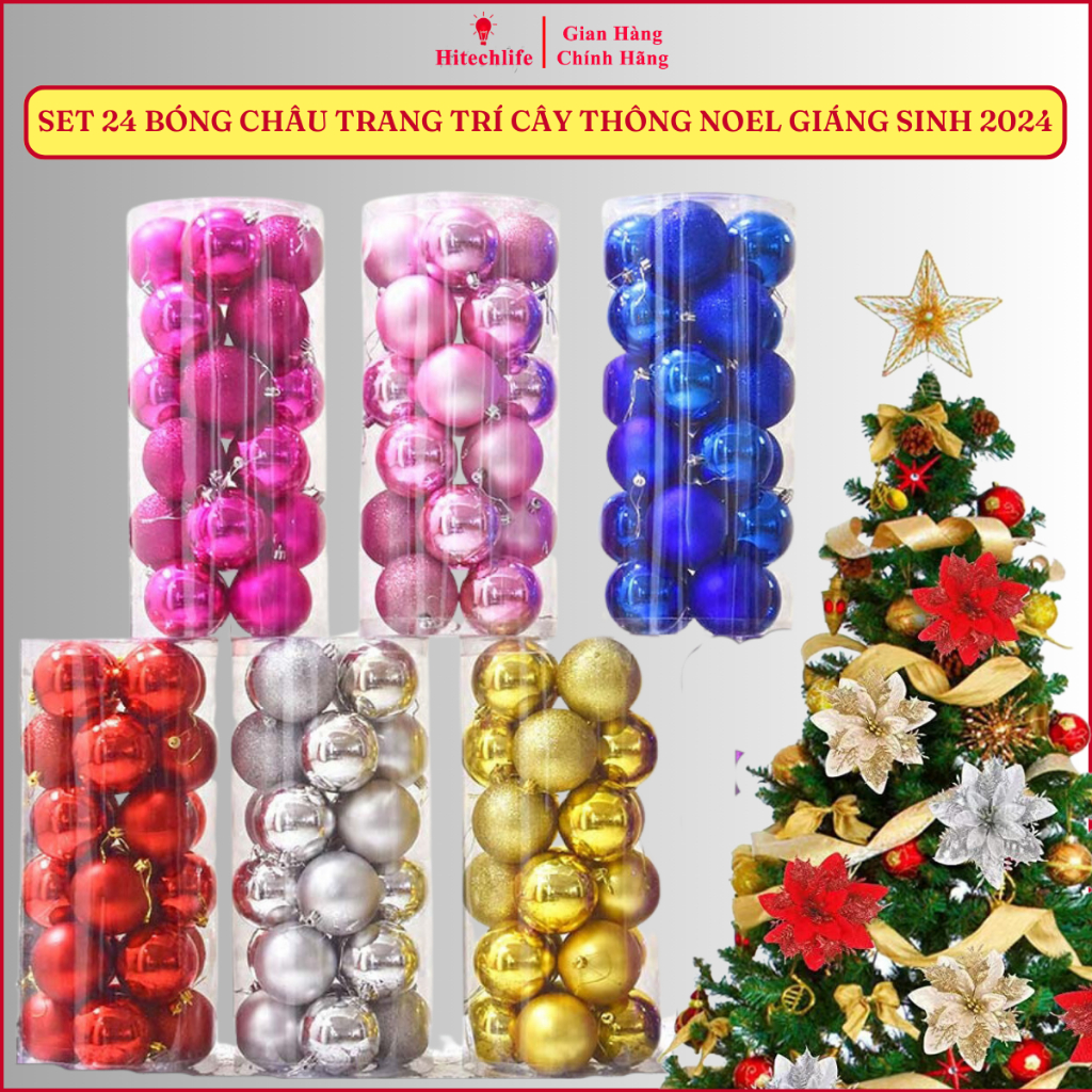 Đồ Trang Trí Cây Thông Noel – Phụ Kiện Decor Giáng Sinh 2024 Hitechlife 24 Bóng Châu Đường Kính 3cm Nhiều Màu Cực Đẹp