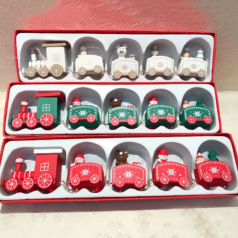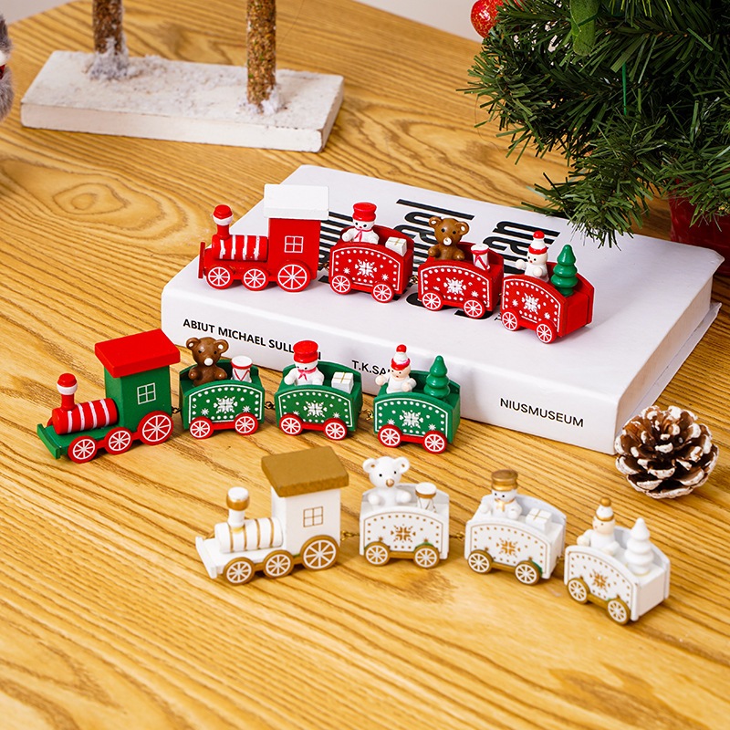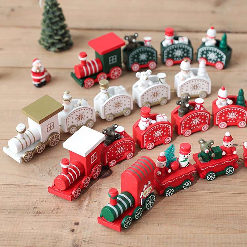 Đồ trang trí đêm Noel, mô hình đoàn xe lửa bằng gỗ