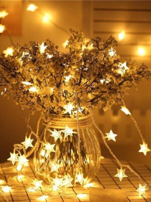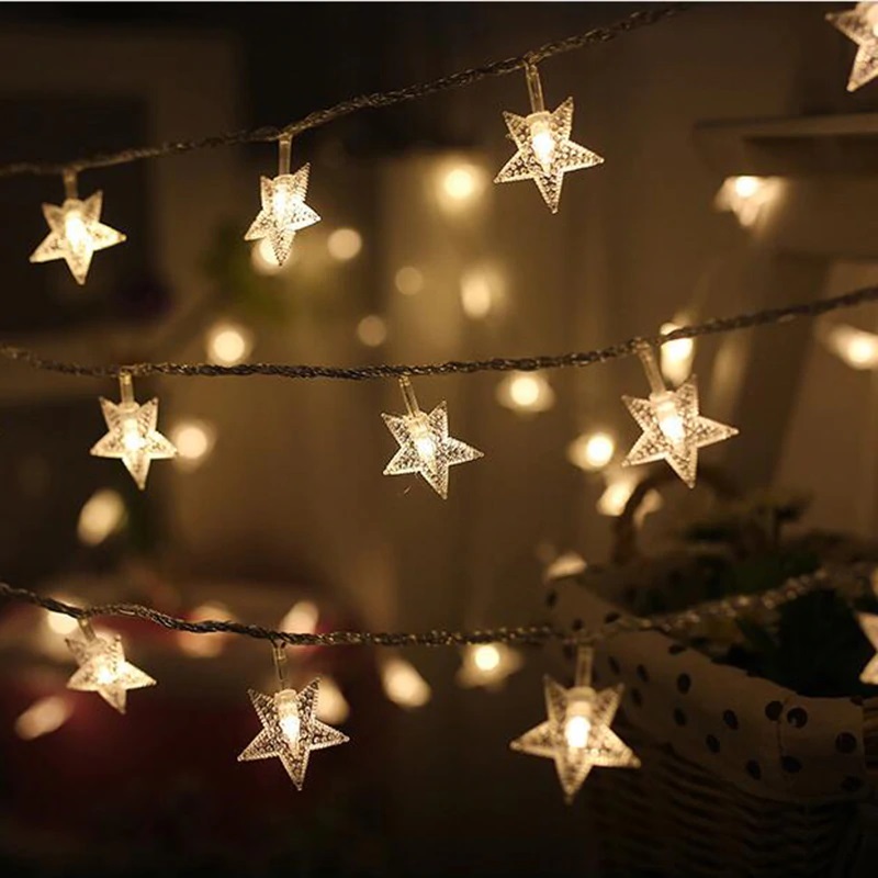 (Dùng Pin) 6M Dây Đèn Led Trang Trí Ngôi Sao Ánh Sáng Vàng Nắng, Đèn Trang Trí Noel Hình Ngôi Sao May Mắn
