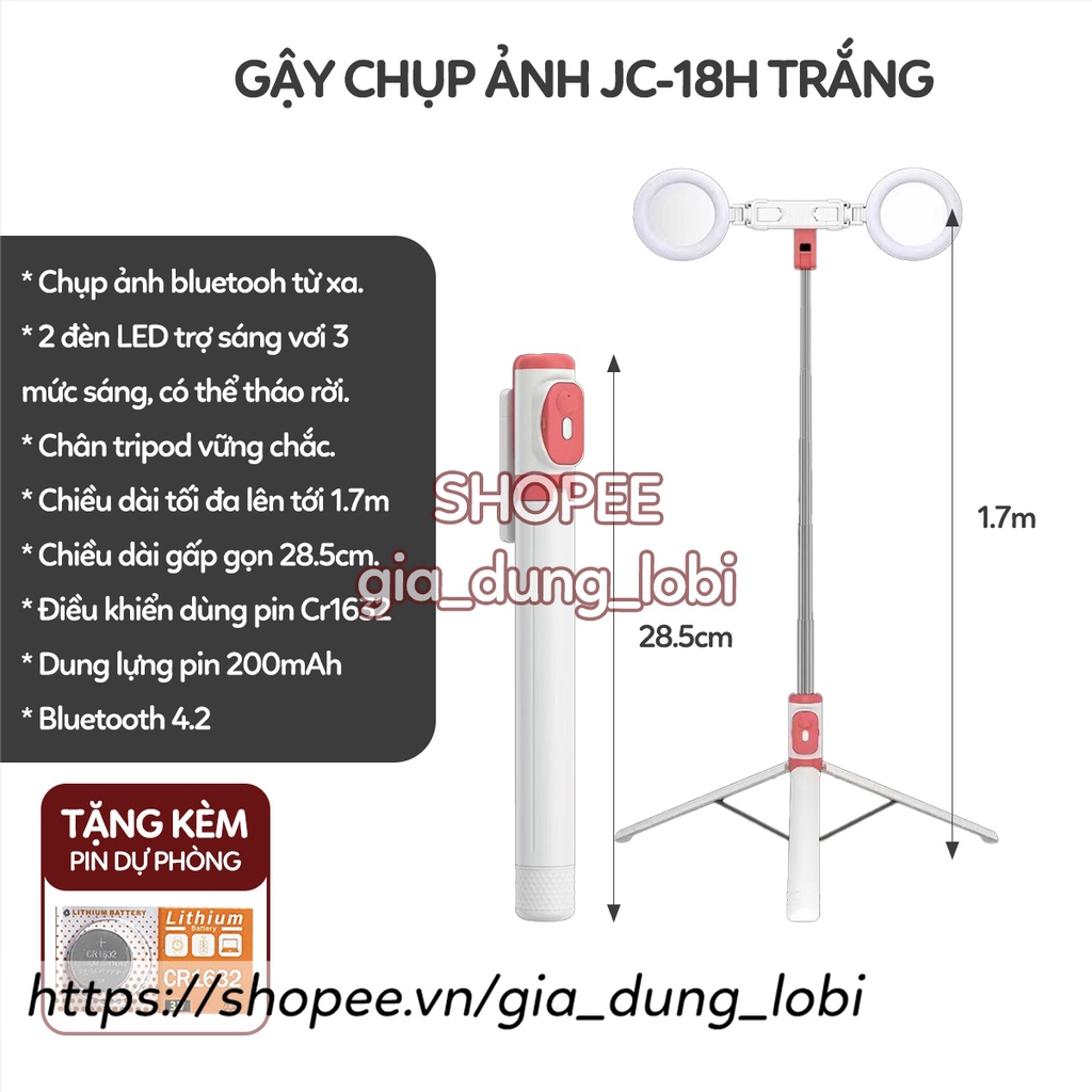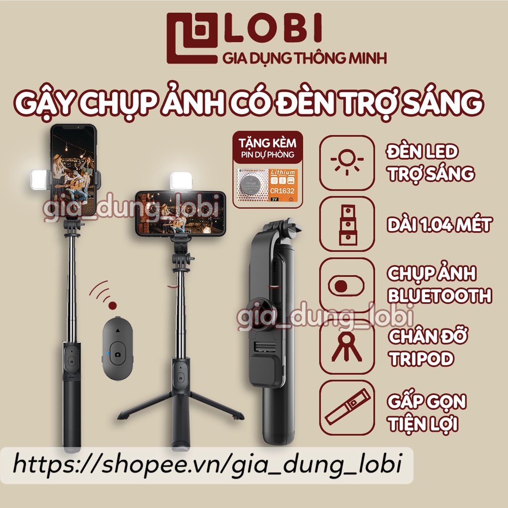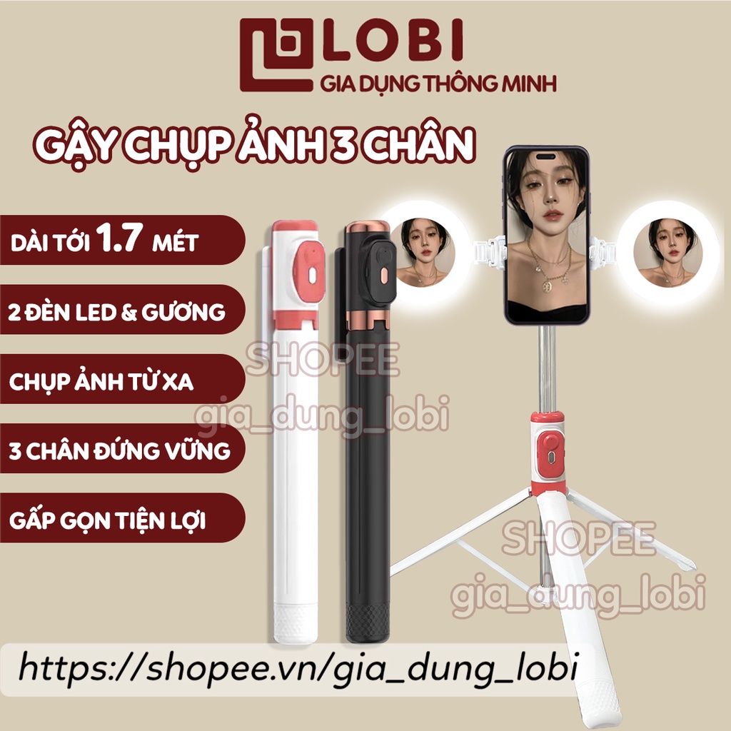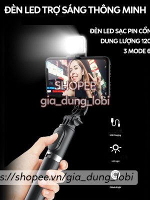 Gậy chụp ảnh 3 chân dài 1.7mét có 2 đèn led trợ sáng gậy tự sướng bluetooth selfie điều khiển từ xa gấp gọn cao cấp