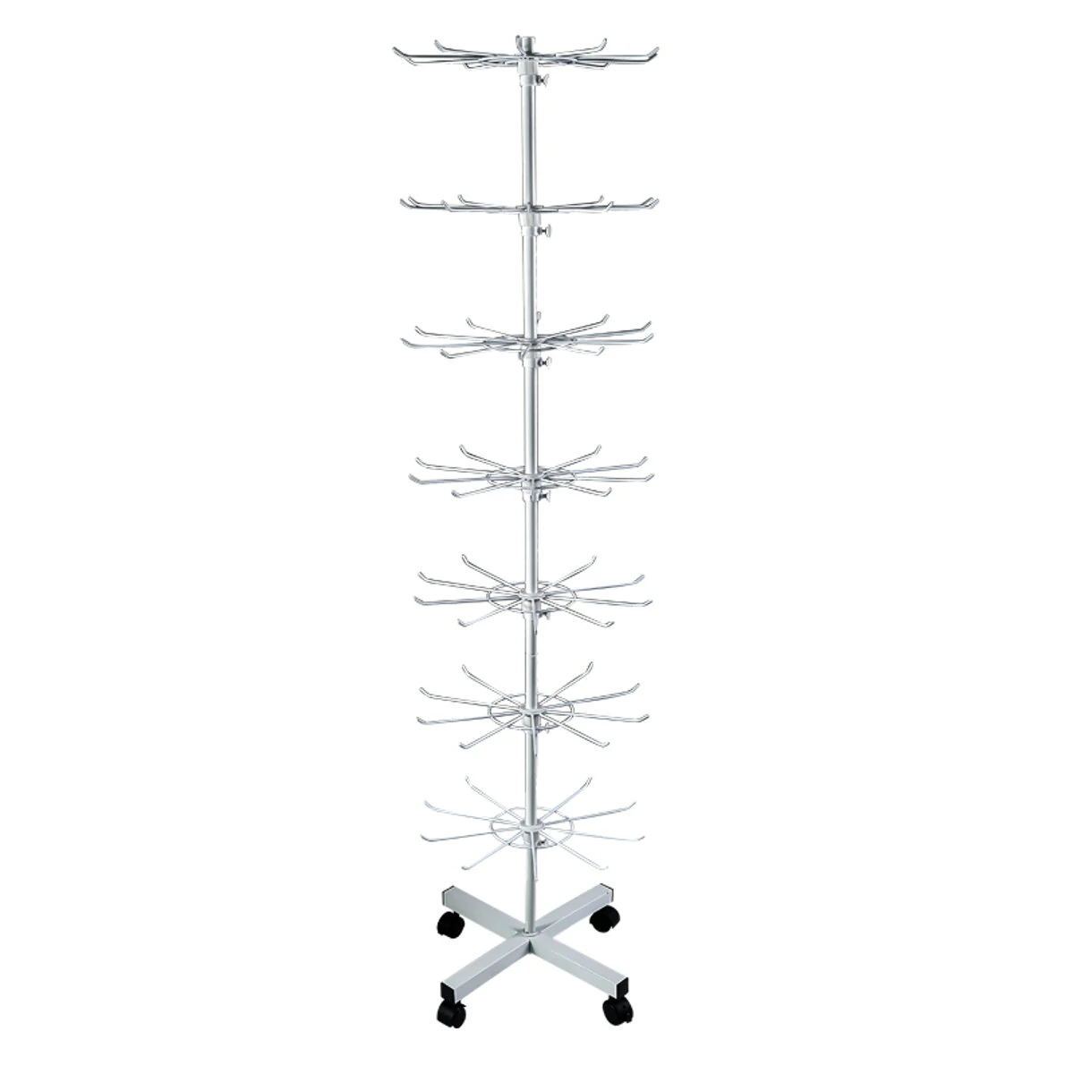 Đây là loại thép chất lượng cao với lớp bột trắng trên bề mặt. Máy kéo sợi 7 lớp với 10 móc trên mỗi lớp. Nó là hoàn hảo để bạn trưng bày nhiều thứ hơn và bán được nhiều thứ hơn. Nó rất dễ lắp ráp và có bốn bánh xe ở phía dưới để dễ dàng di chuyển. Các bánh xe có thể được tháo rời để tăng độ ổn định. Chiều cao khe hở giữa mỗi ống cũng có thể được điều chỉnh để phù hợp với chiều cao của từng loại hàng hóa.