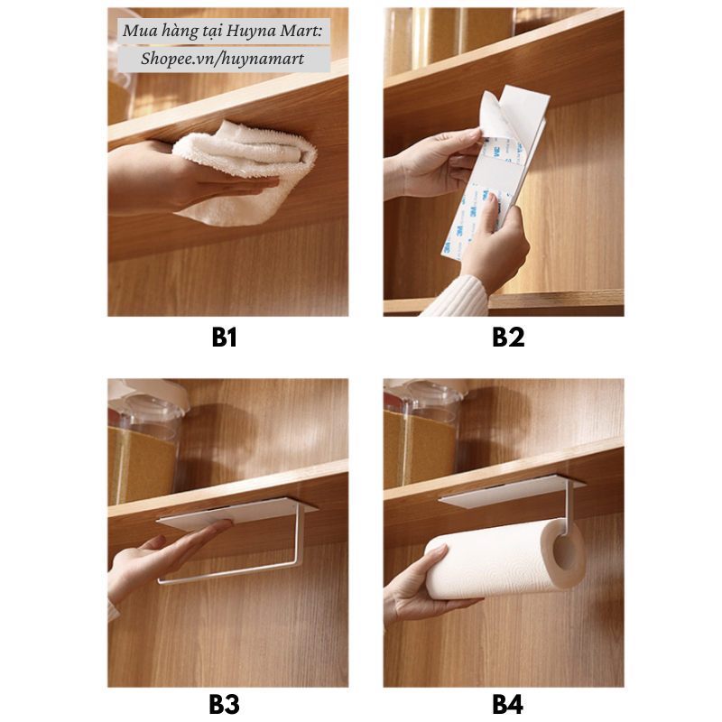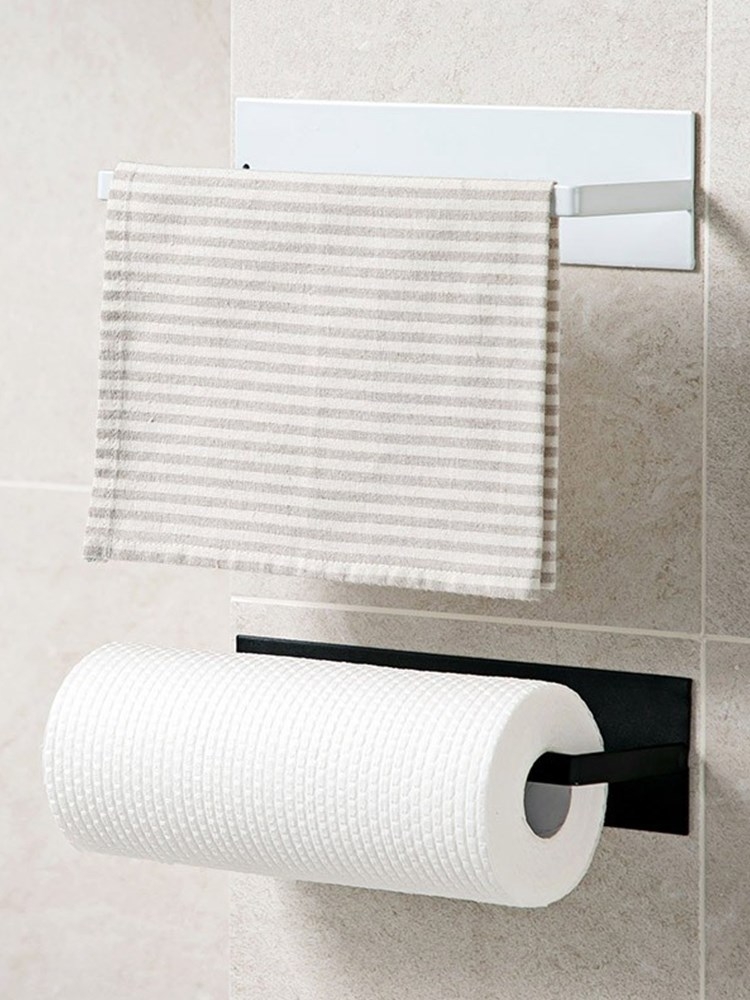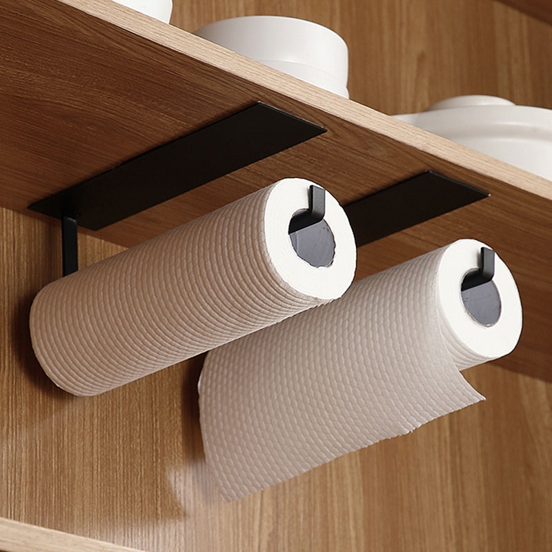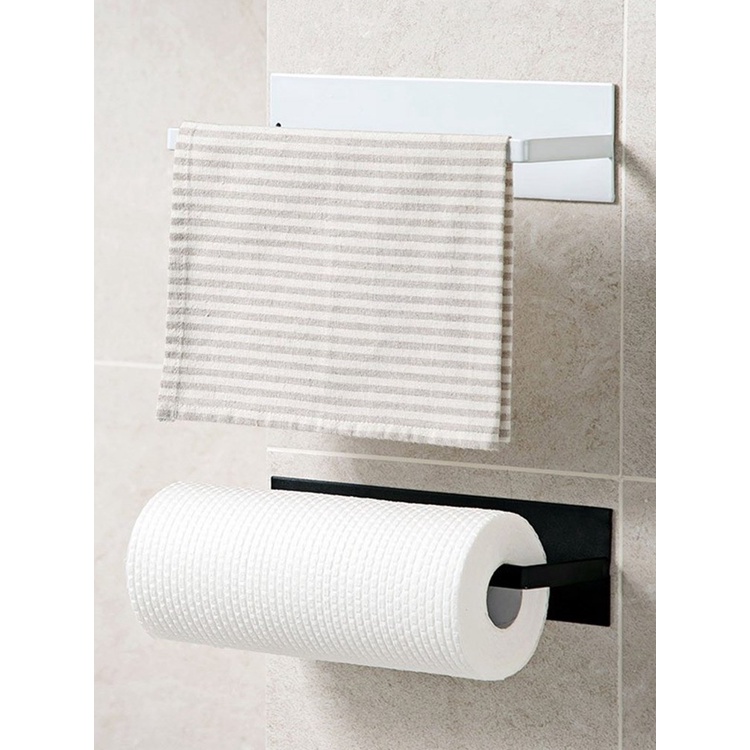 Giá treo giấy cuộn nhà bếp, treo khăn đa năng phun sơn tĩnh điện không cần khoan đục NC45