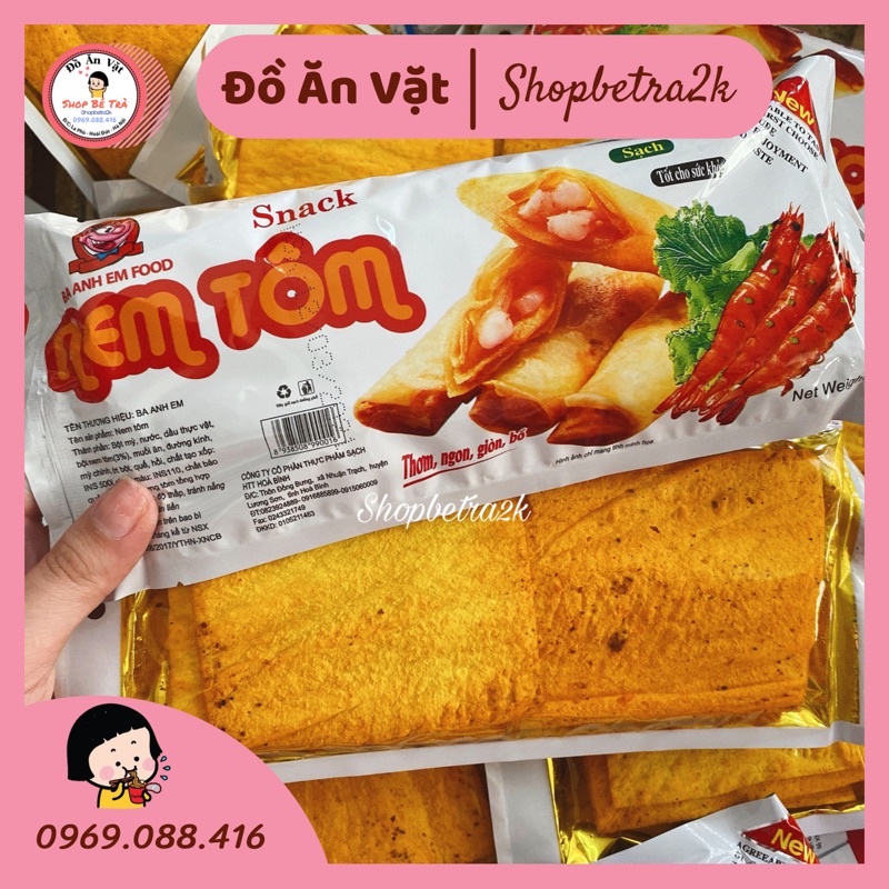 Gói snack nem tôm, món ăn vặt có thể dùng tiện lợi trong nhiều trường hợp. Sản phẩm giá tốt, các thành phần an toàn cho sức khỏe.