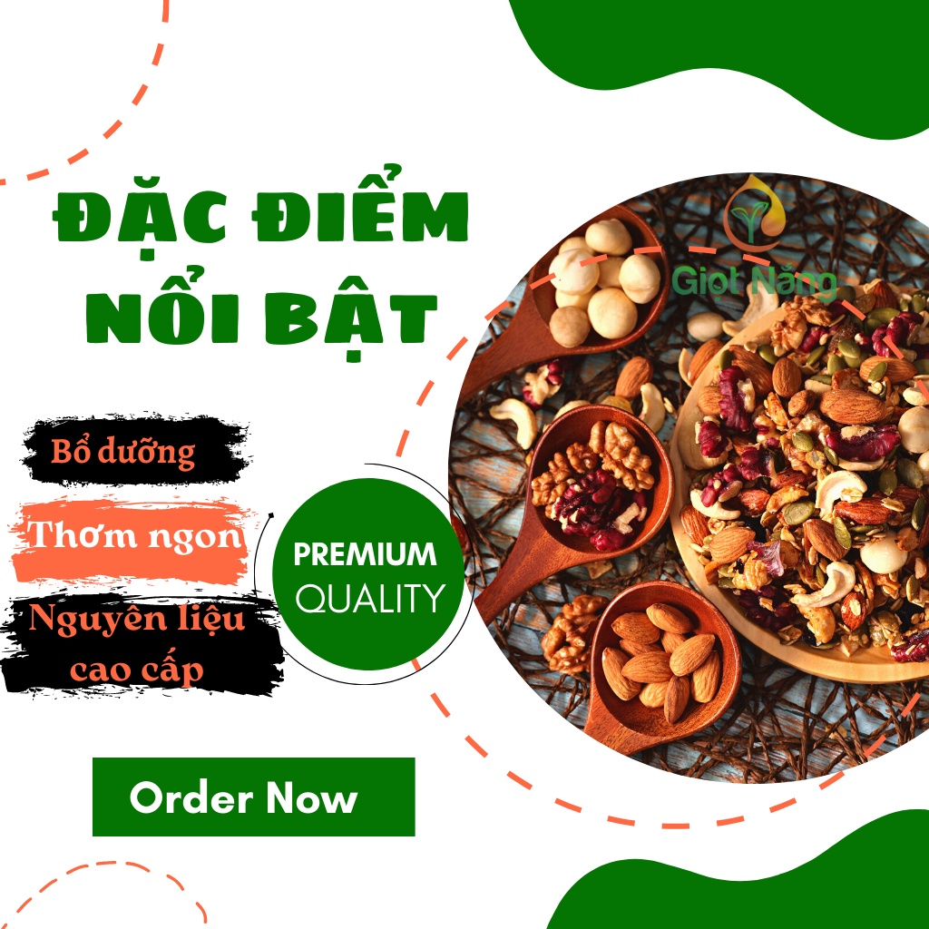 Granola ăn kiêng siêu hạt ngũ cốc giảm cân không đường ít yến mạch bổ sung dinh dưỡng premium 500g Nông Sản Giọt Nắng