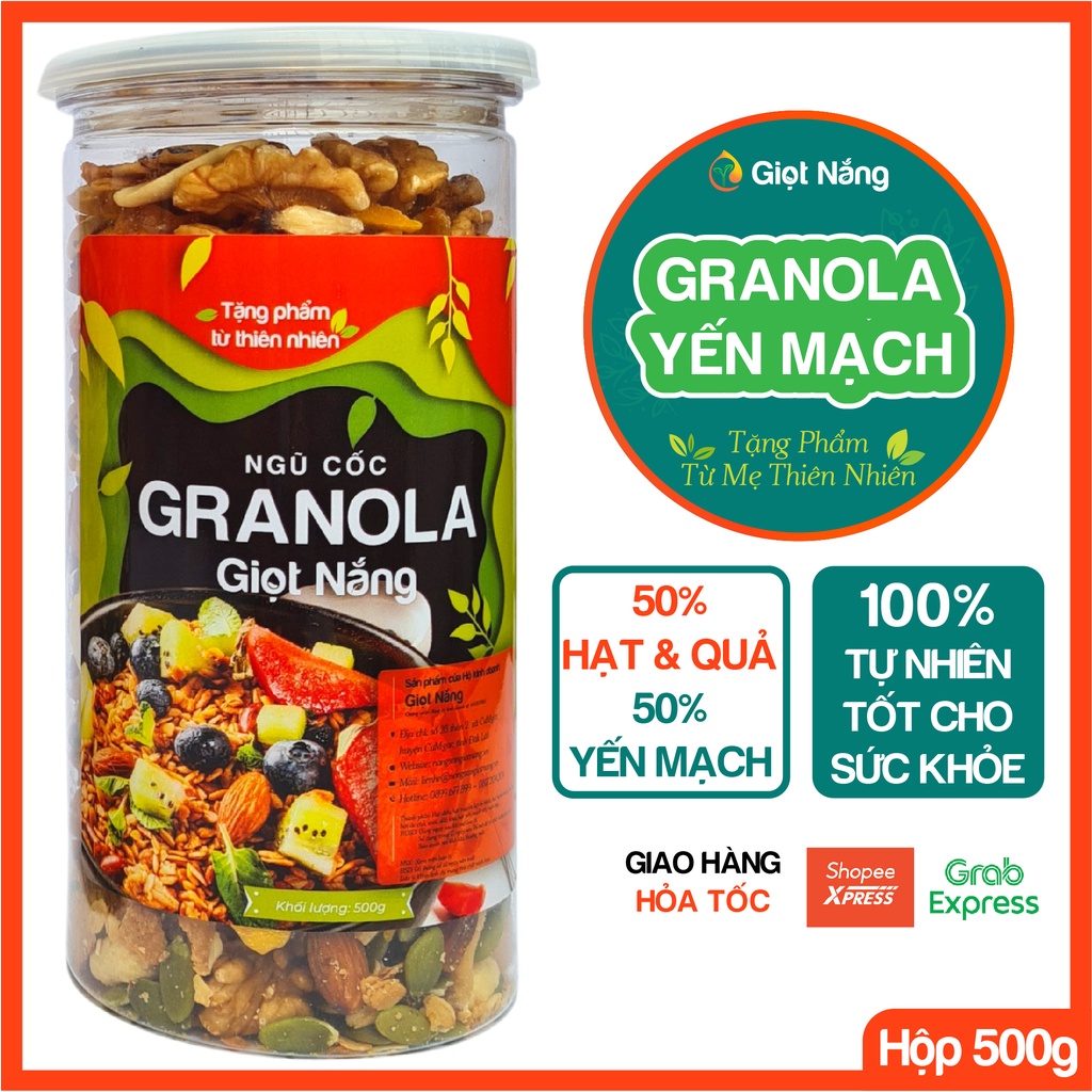 Granola siêu hạt và Granola ăn kiêng không đường được mix từ 10 loại Hạt và Quả nguyên vị. Yến mạch nhập khẩu từ Úc được nướng cùng mật ong hoa cà phê của núi rừng Tây Nguyên, đem đến vị thơm ngon, giòn rụm mà lại vô cùng dinh dưỡng.