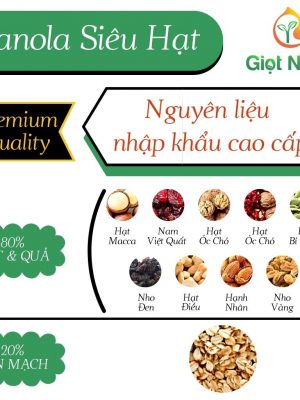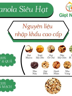 Granola siêu hạt ăn kiêng không đường được mix từ 10 loại Hạt và Quả nguyên vị, yến mạch nhập khẩu từ Úc được nướng cùng mật ong hoa cà phê của núi rừng Tây Nguyên, đem đến vị thơm ngon, giòn rụm mà lại vô cùng dinh dưỡng.