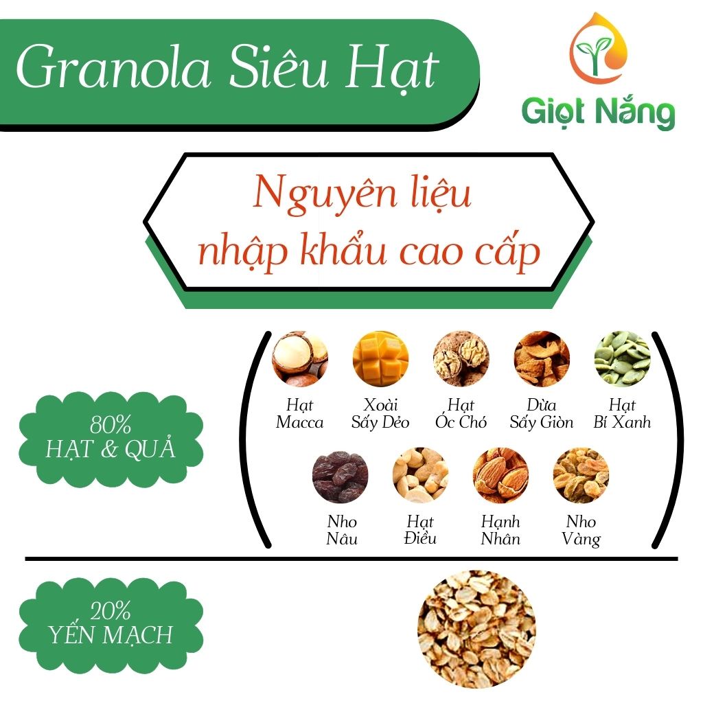 Granola siêu hạt ăn kiêng ngũ cốc giảm cân dinh dưỡng eat clean không đường thêm hạt Macca ít yến mạch từ Nông Sản Sạch Giọt Nắng.