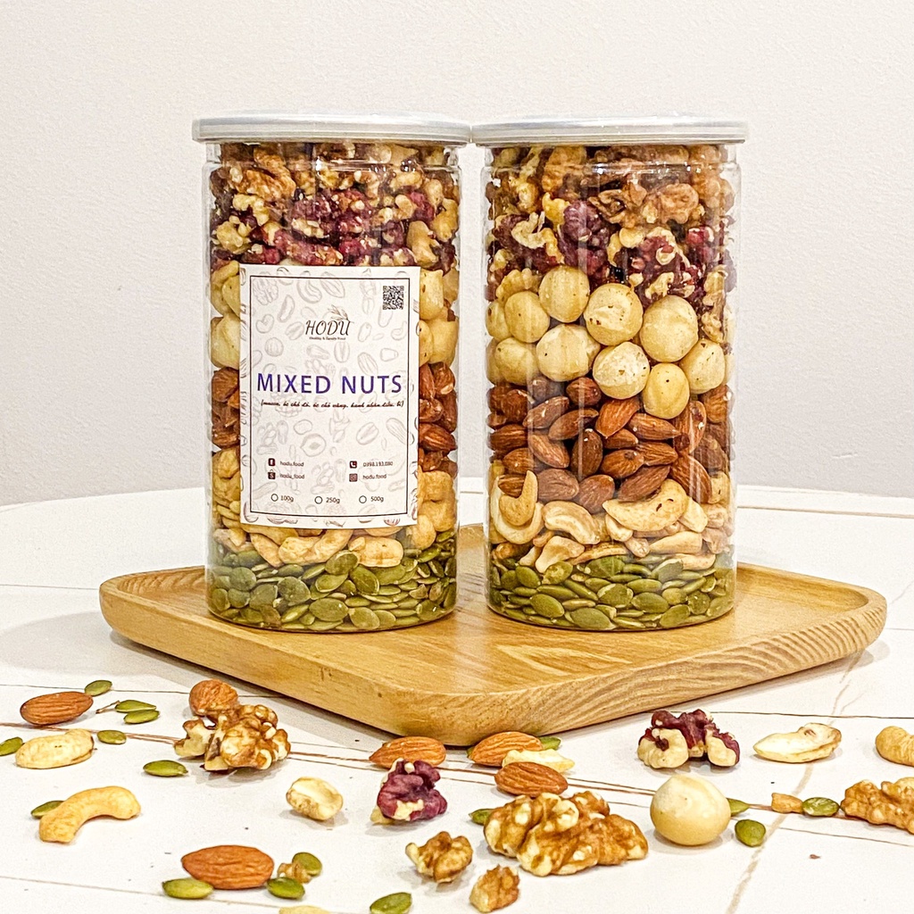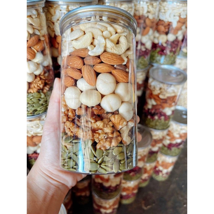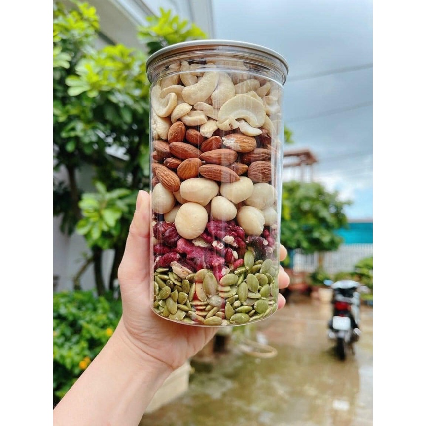 Hạt dinh dưỡng mix 5 loại hạt macca, hạt điều, óc chó, hạt bí, hạnh nhân hộp 500g