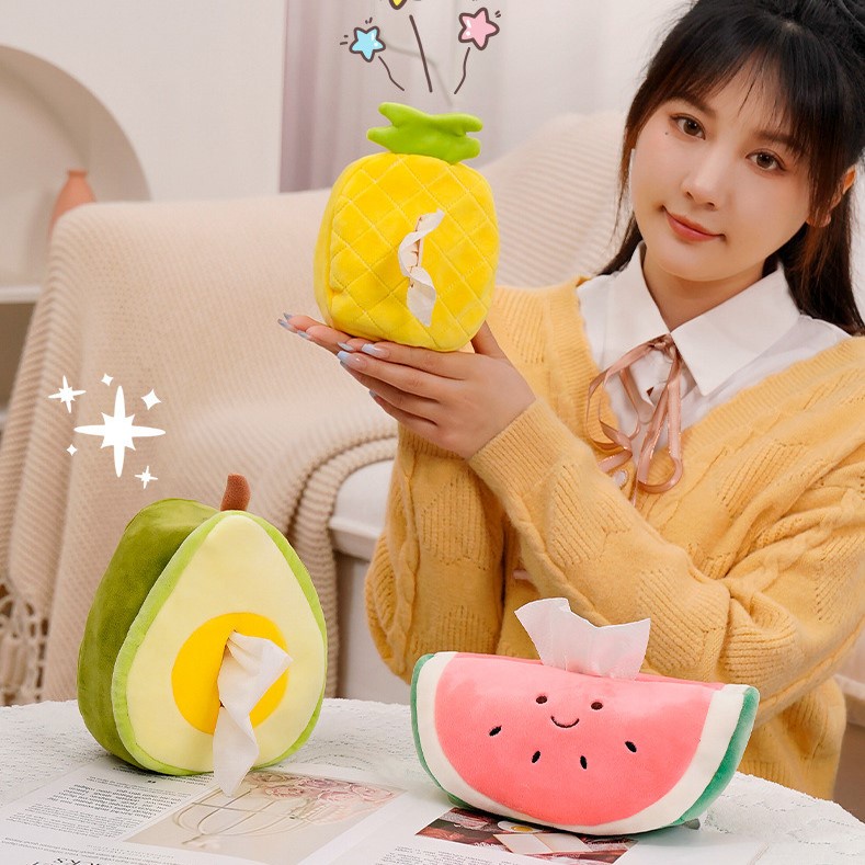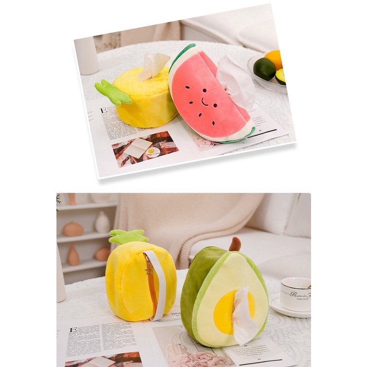Hoạt Hình Sáng Tạo Trái Cây Sang Trọng Hộp Khăn Giấy Đồ Chơi Búp Bê Phòng Ngủ Hộp Bảo Quản Di Động Tay Vịn Xe Hộp Giấy Khai Thác