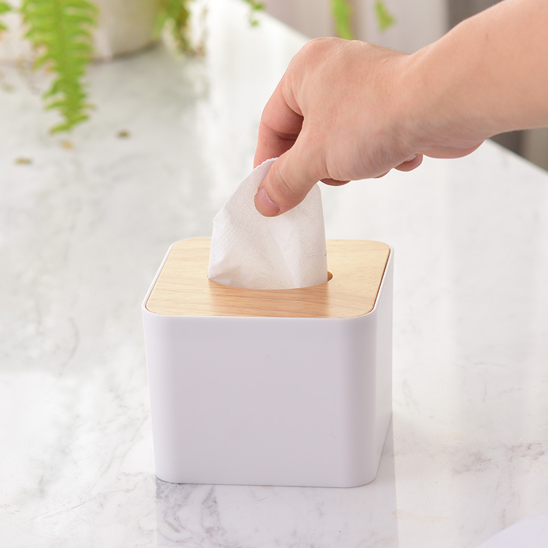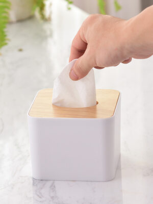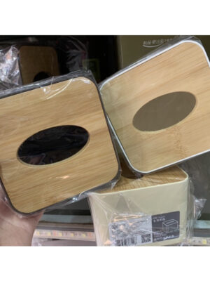 Hộp Đựng Giấy Ăn Hình Vuông Mặt Tre Thiết Kế Đơn Giản, Hộp Khăn Giấy 8740