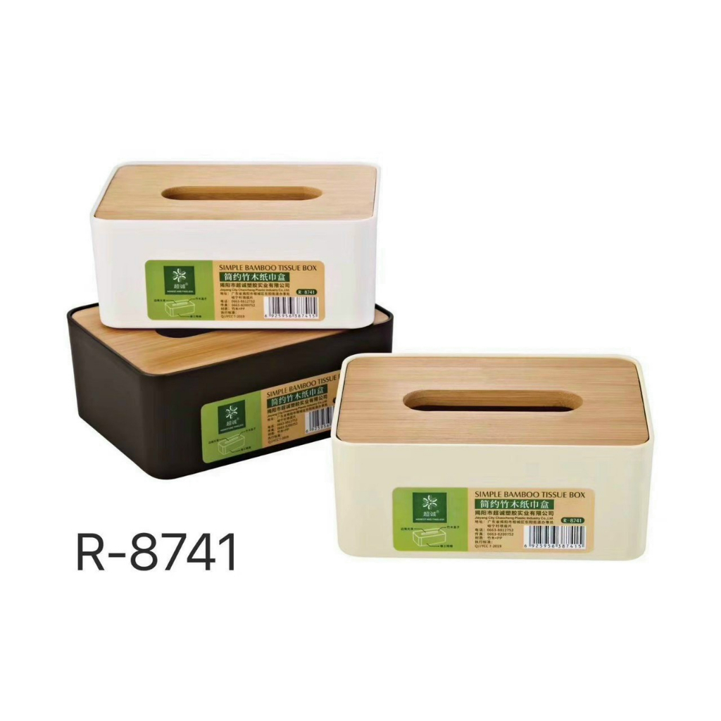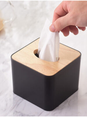Hộp Đựng Giấy Ăn Hình Vuông Mặt Tre Thiết Kế Đơn Giản, Hộp Khăn Giấy 8740