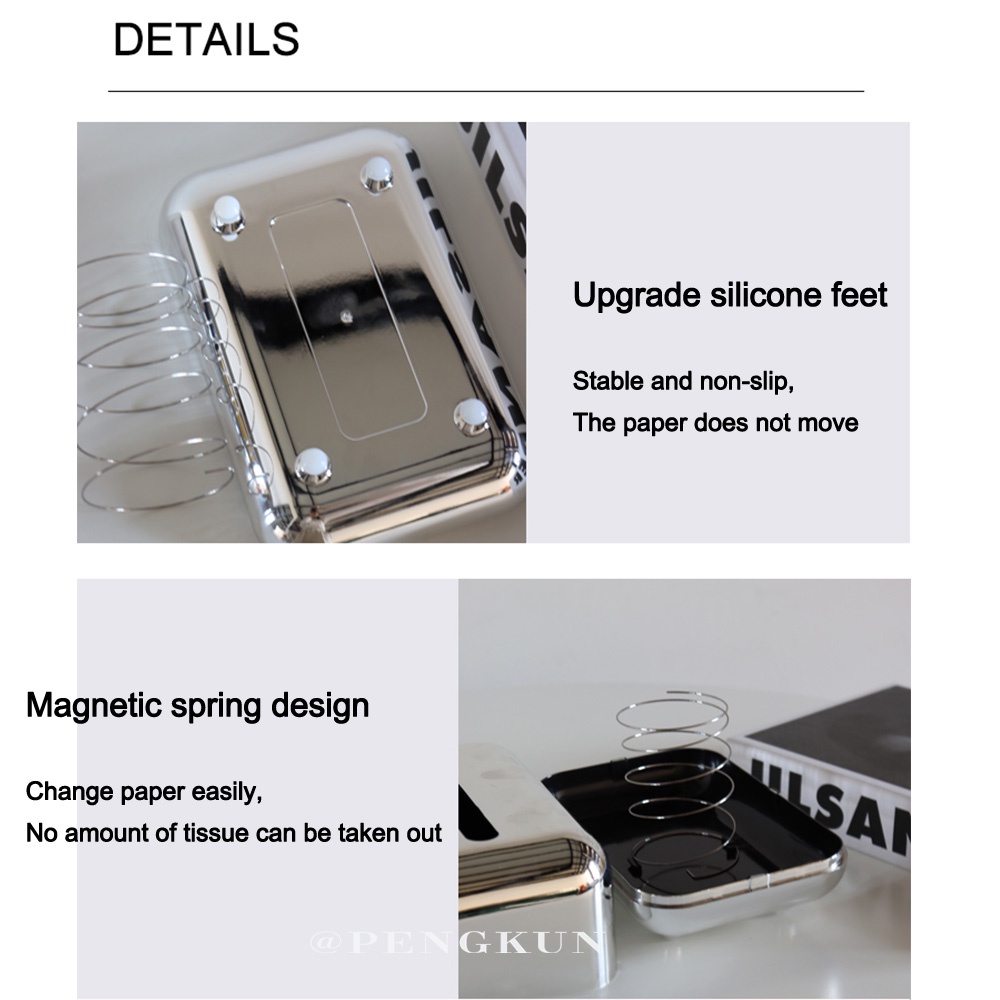 Hộp đựng khăn giấy được làm bằng chất liệu nhựa ABS, không phải thép không gỉ / hợp kim, vì nắp trên và dưới có lực hút từ tính