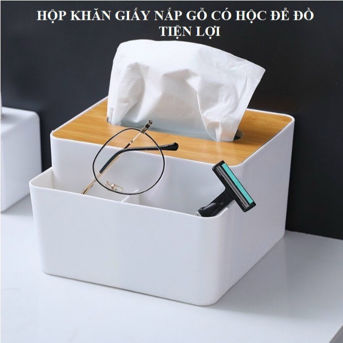 Hộp Đựng Giấy Nắp Gỗ Tre Cao Cấp