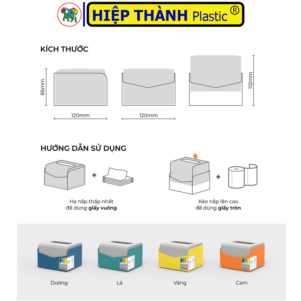 🔹 Thiết kế: đa dạng và tinh tế có thể sử dụng được 2 trong 1 vừa dùng được giấy vuông và giấy cuộn tròn với một bước đẩy hộp lên cao.