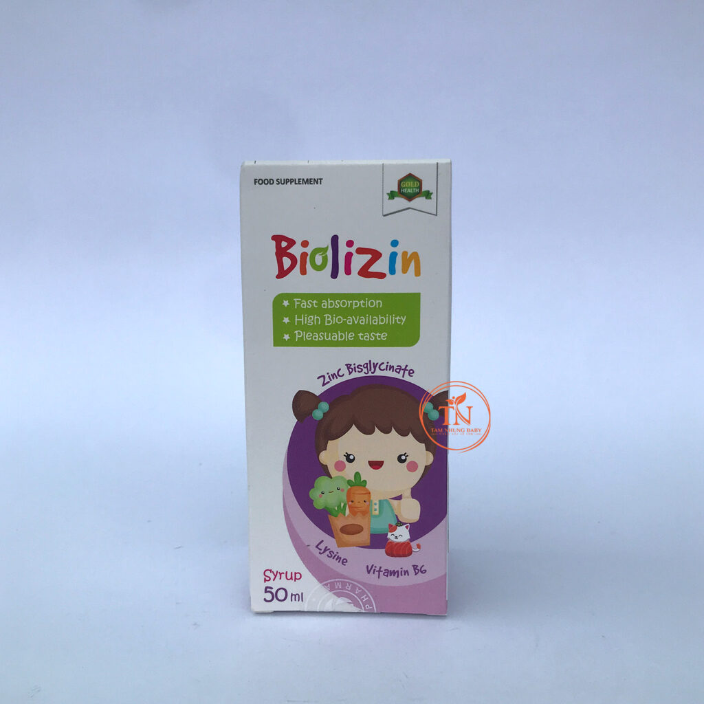 👉 Biolizin – Kẽm amin cung cấp cho bé kẽm bisglycinate kết hợp với lysine và vitamin B6 kích thích bé ăn ngon miệng, giúp bé tăng cân đều, hấp thu tốt và giảm tình trạng tiêu chảy ngay sau khi sử dụng.