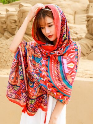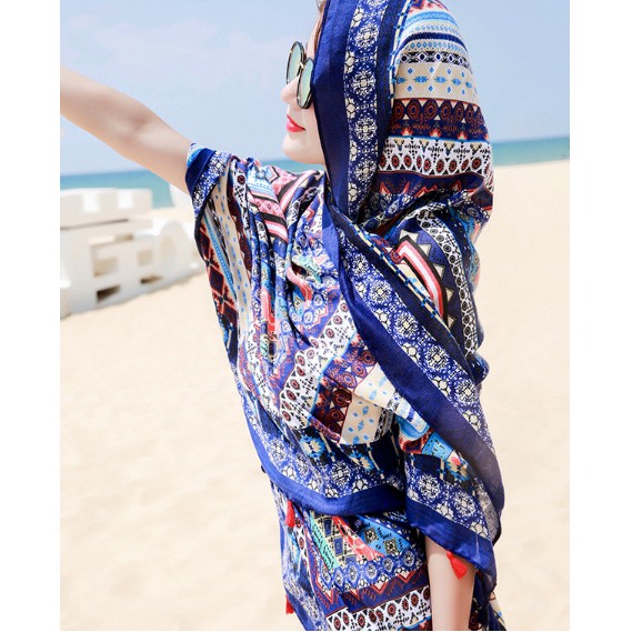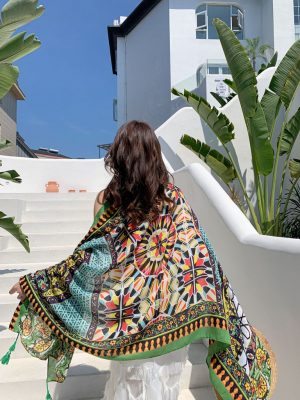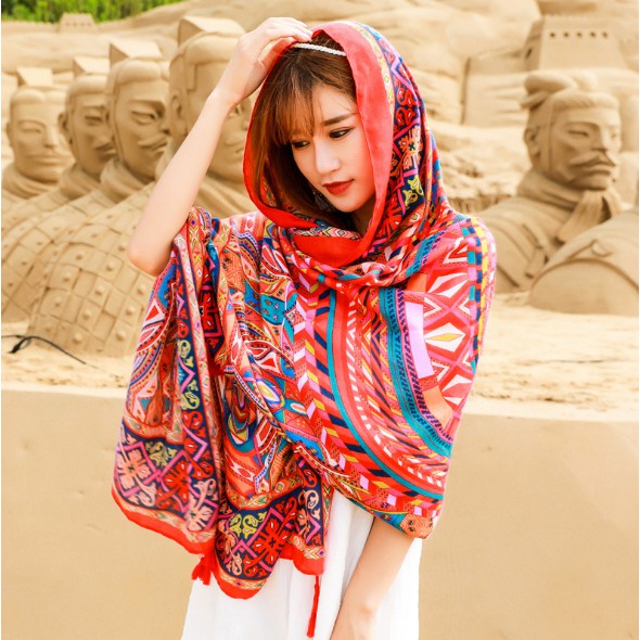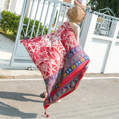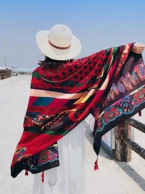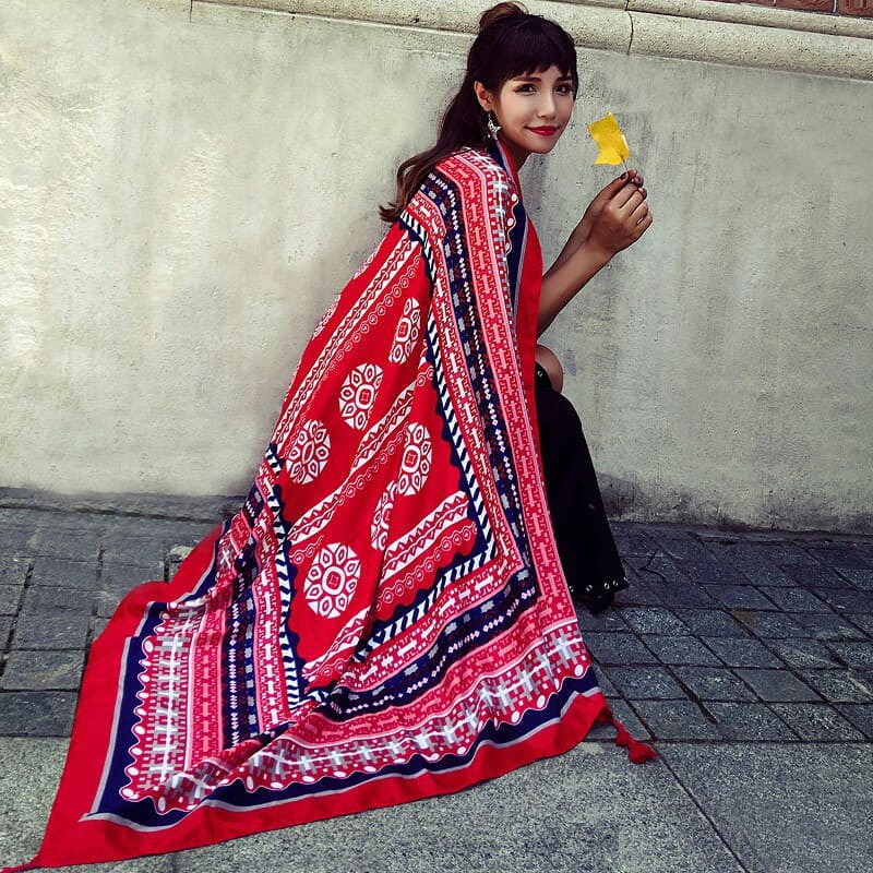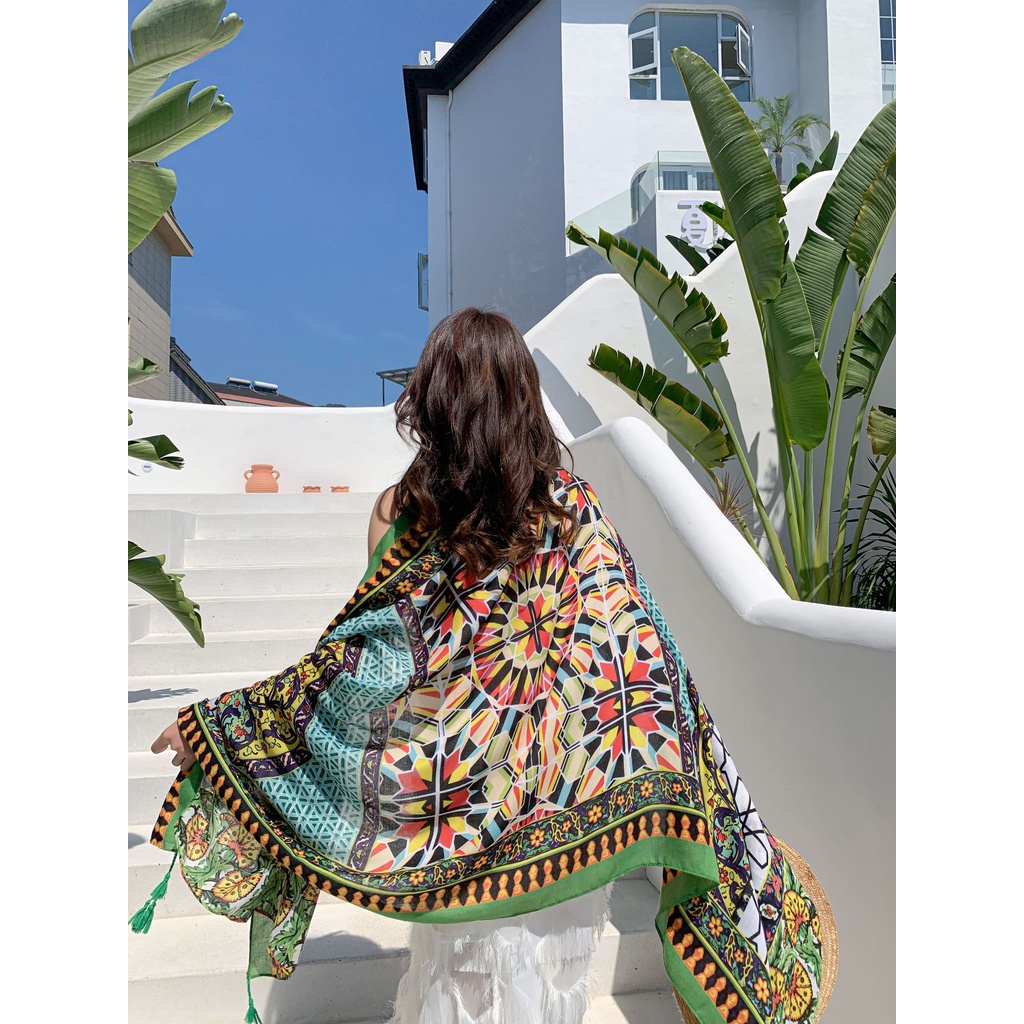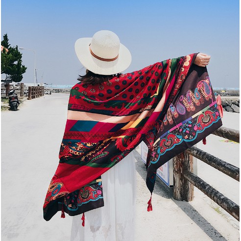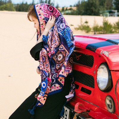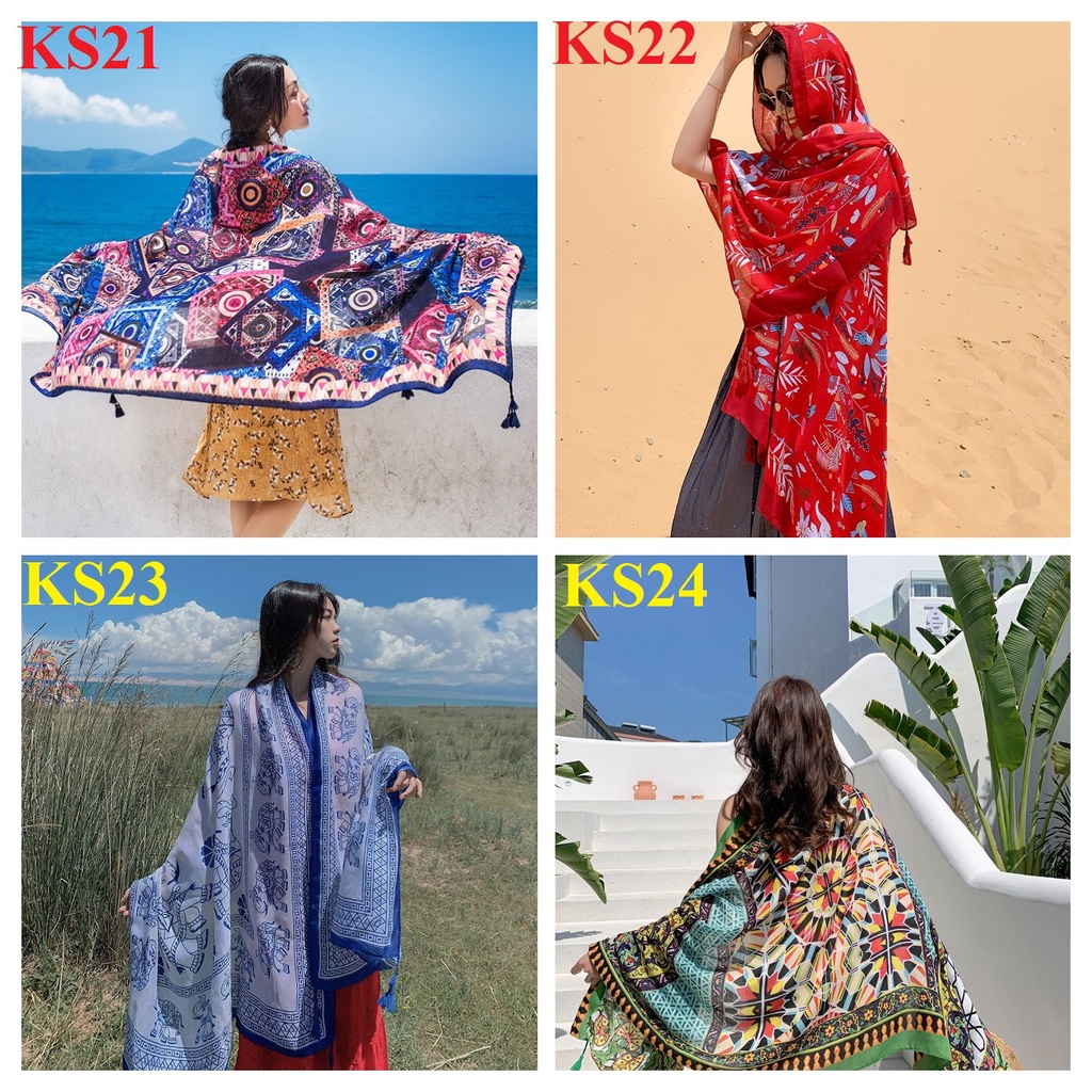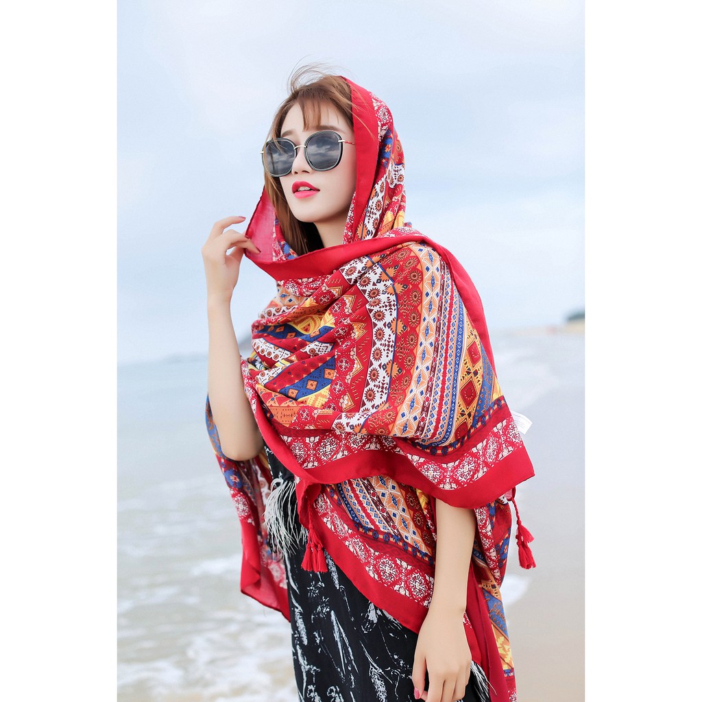– Khăn choàng boho thổ cẩm đi biển