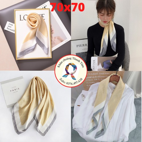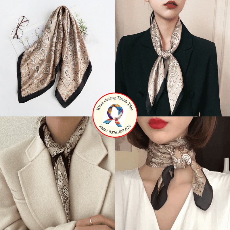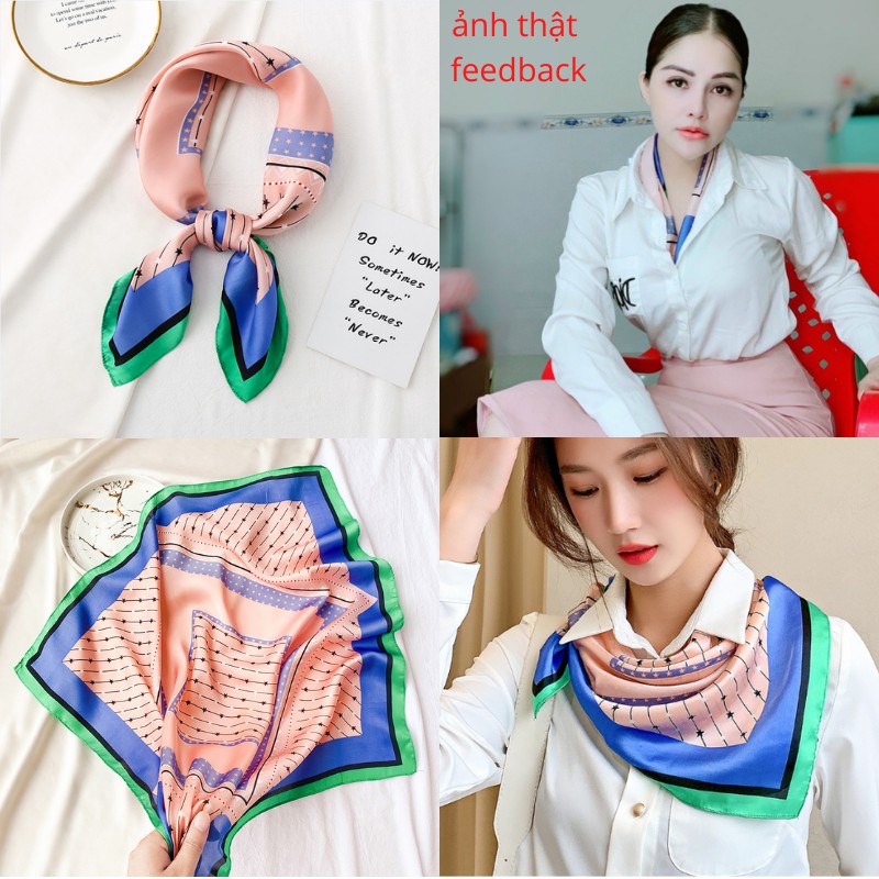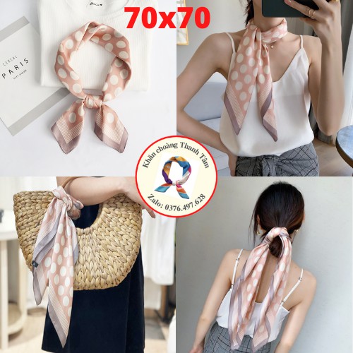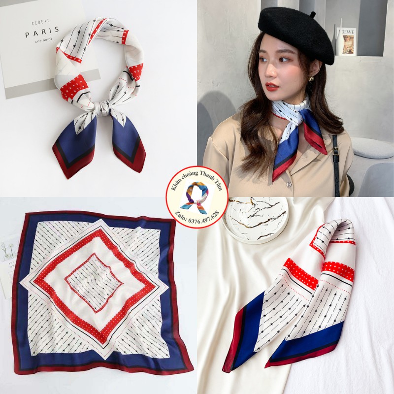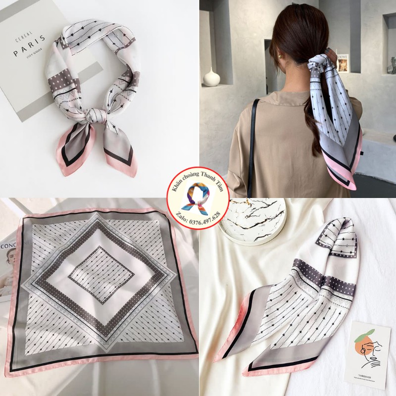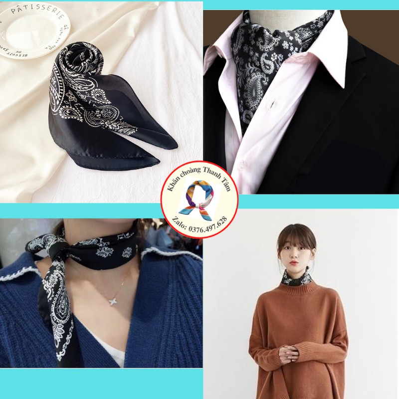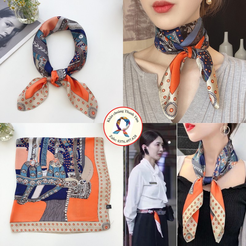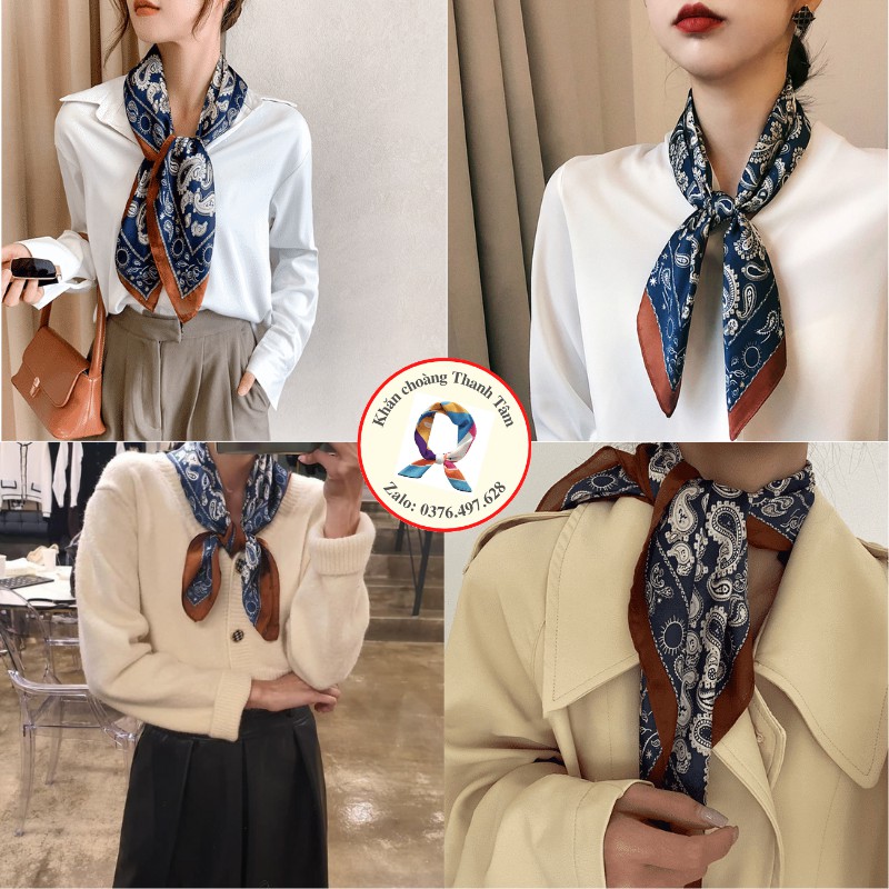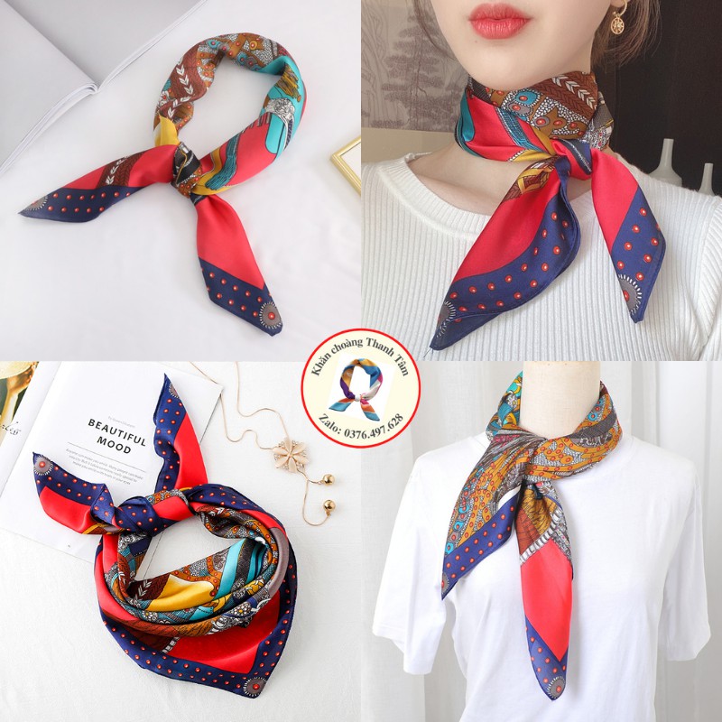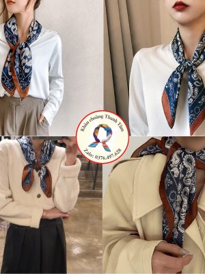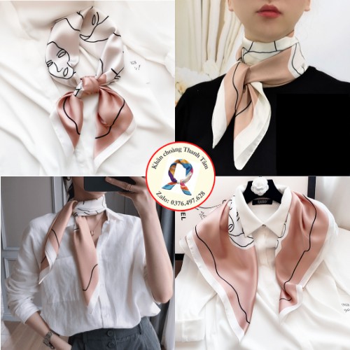 – Khăn lớn, gấp chéo 100cm, thoải mái thắt nợ tạo kiểu, quàng cổ áo Sơ mi, đồng phục áo trắng, váy cổ V cổ tròn, Áo 2 dây áo phông vừa sang trọng vừa điệu đà