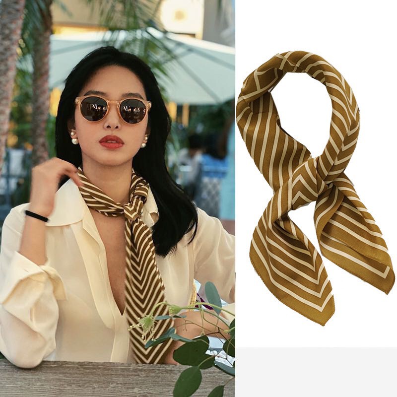 ✔️Bên cạnh những kiểu thắt nơ tinh nghịch, chiếc khăn vuông bé nhỏ này dễ dàng biến tấu thành chiếc khăn turban điệu đà nhưng không kém phần cá tính, hay biến thành chiếc khăn trùm đầu duyên dáng, thậm chí là điểm nhấn thú vị khi thắt eo và buộc hờ hững trên túi.