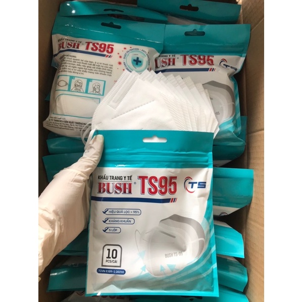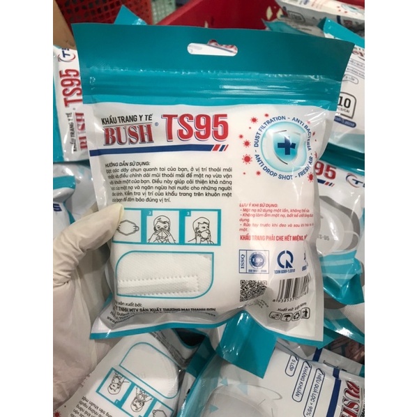 [Khẩu trang Bush TS95] Túi 10 cái 5 lớp hàng chính hãng dày, không xù lông
