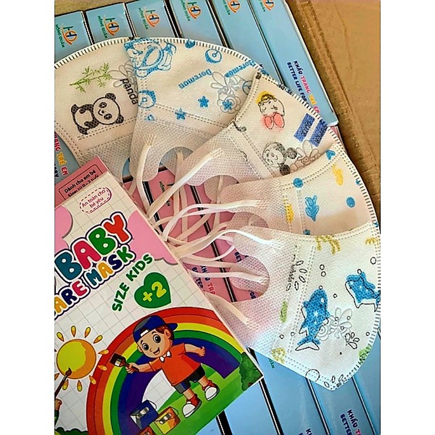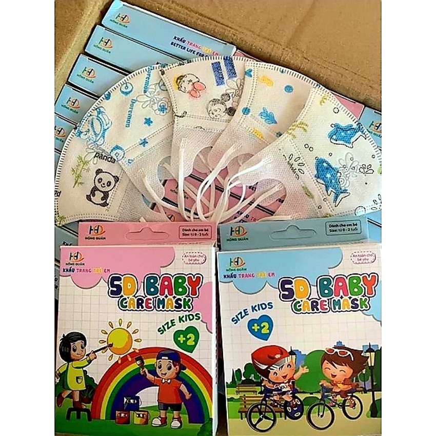 Khẩu trang trẻ em 5D Hồng Quân, hộp 10 cái, khẩu trang cho bé 2-6 tuổi, 3 lớp kháng khuẩn.