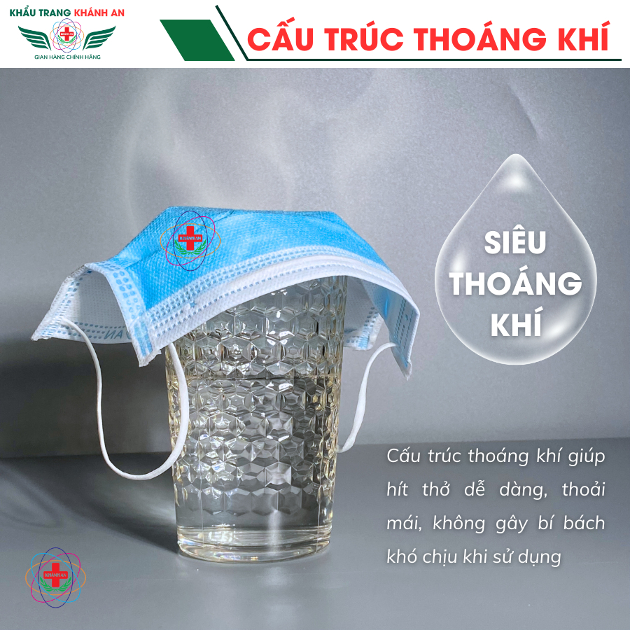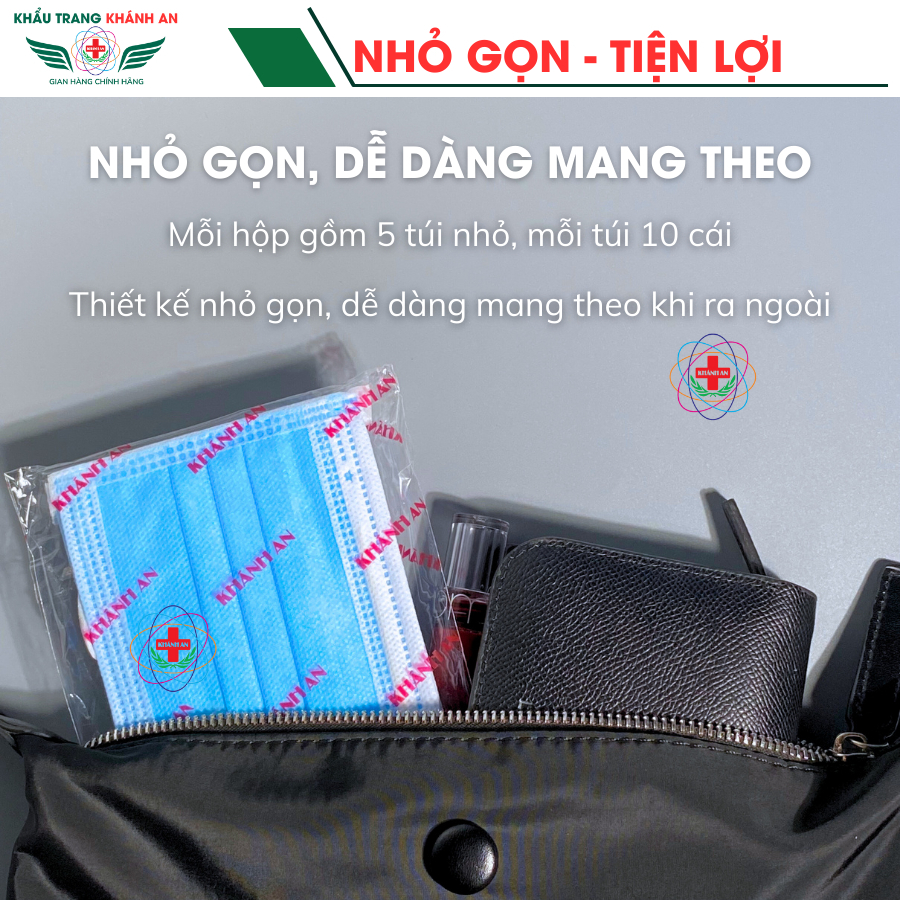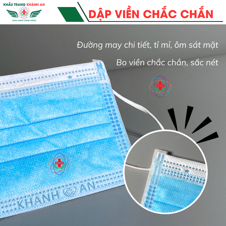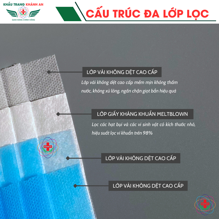 Khẩu trang y tế 4 lớp Khánh An cao cấp kháng khuẩn hộp 50 cái dày dặn không xù lông