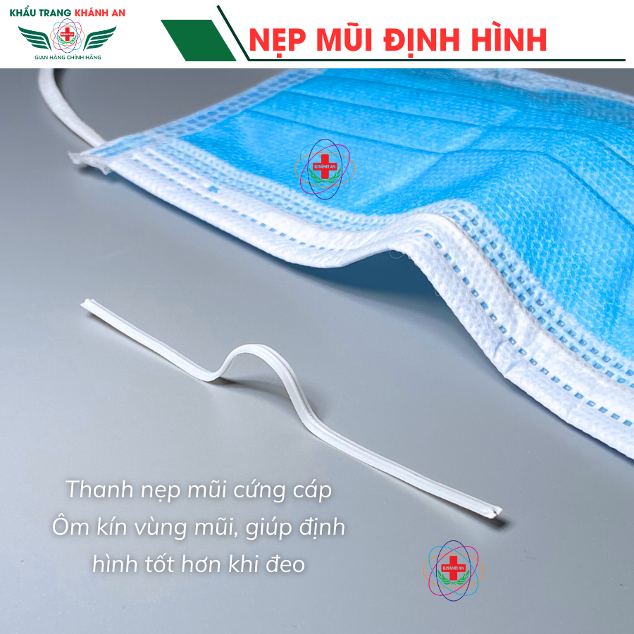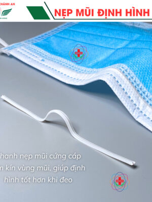 – Thiết kế thông minh với thanh nẹp mũi định hình giữ khẩu trang y tế.