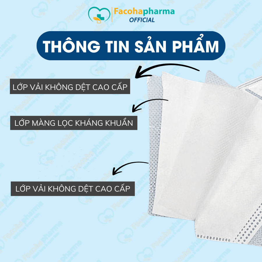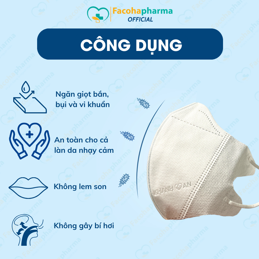 Cấu tạo đa lớp giúp ngăn chặn khói bụi, vi khuẩn xâm nhập vào đường hô hấp, không gây dị ứng.