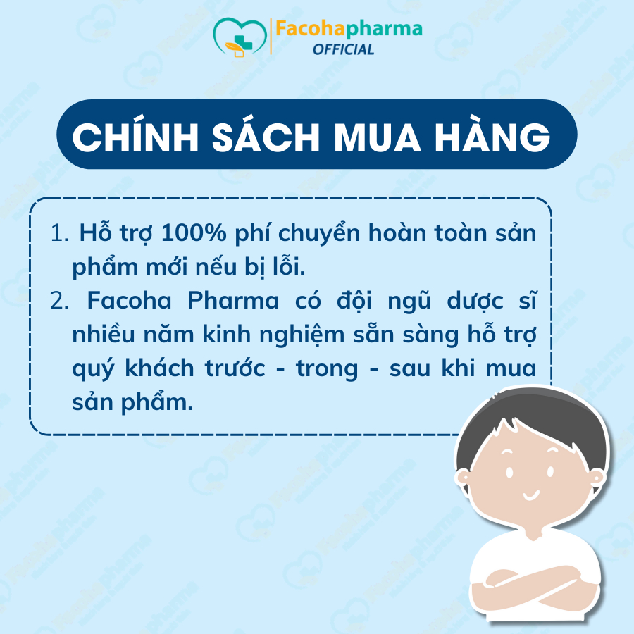 Facohapharma có đội ngũ dược sĩ nhiều năm kinh nghiệm sẵn sàng hỗ trợ quý khách trước – trong – sau khi mua sản phẩm.