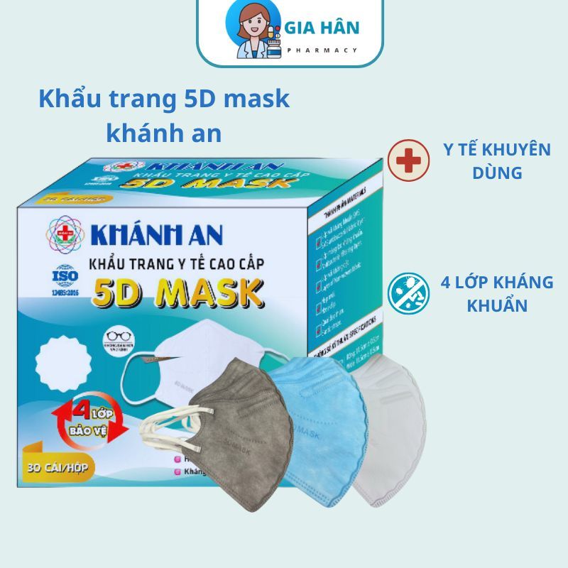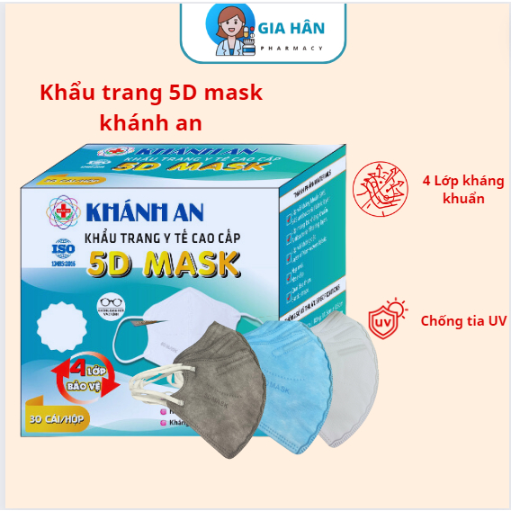 Khẩu trang y tế chống tia uv 5d Khánh An 4 lớp kháng khuẩn hiệu suất lọc bụi siêu mịn hơn 95% giúp bảo vệ toàn diện