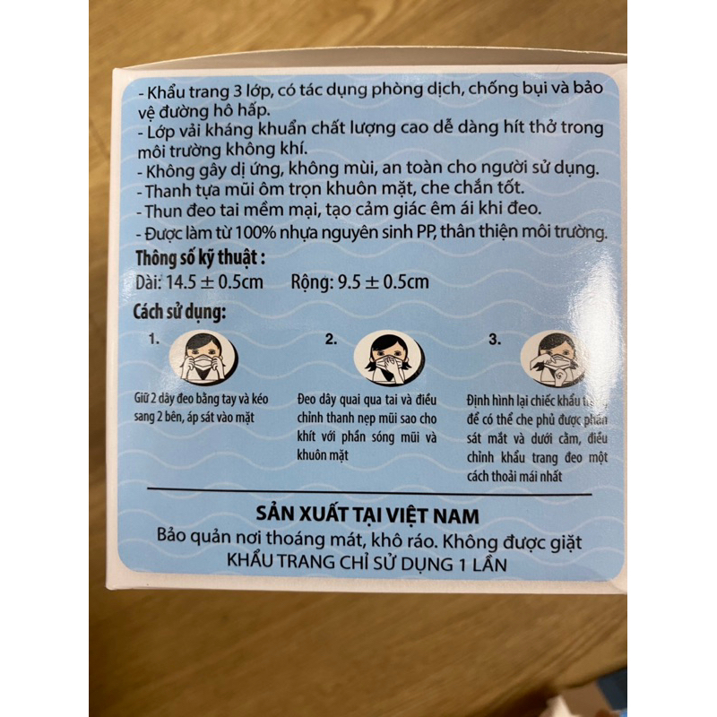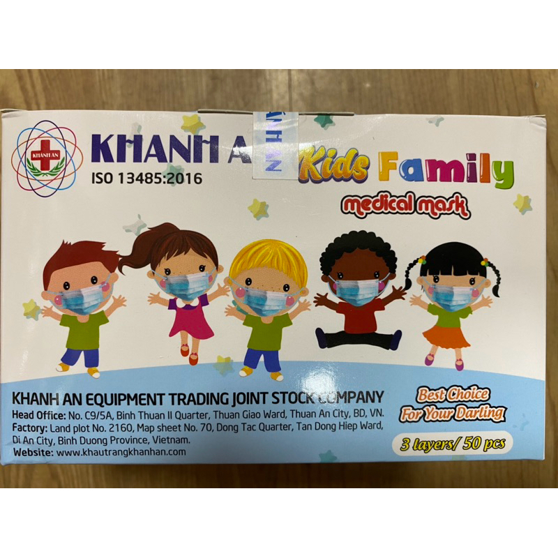 Khẩu trang y tế dành cho các bé trên 6 tuổi Khánh An 3 lớp hộp 50 cái