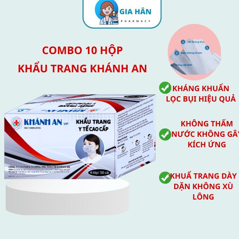 Khấu trang y tế Khánh An 4 lớp giúp chống bụi, kháng khuẩn bảo vệ sức khỏe cho mọi người. Thương hiệu cao cấp uy tín.