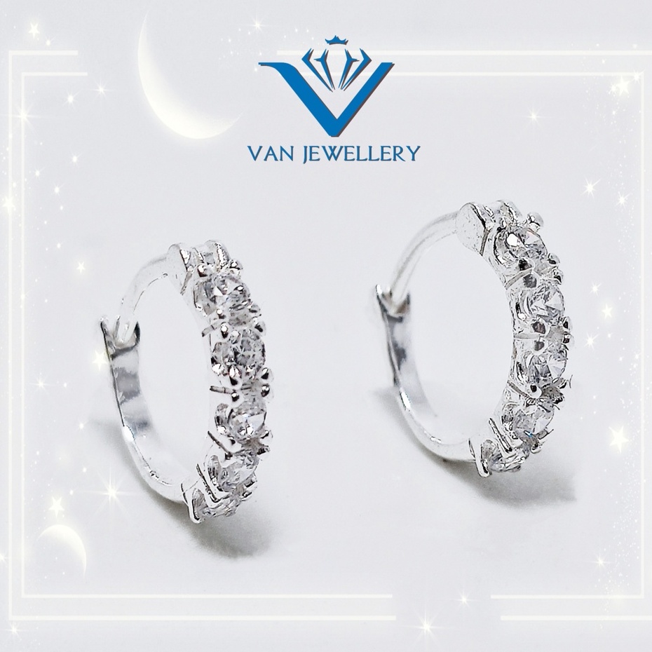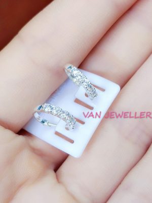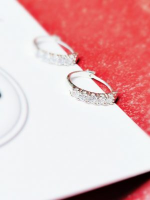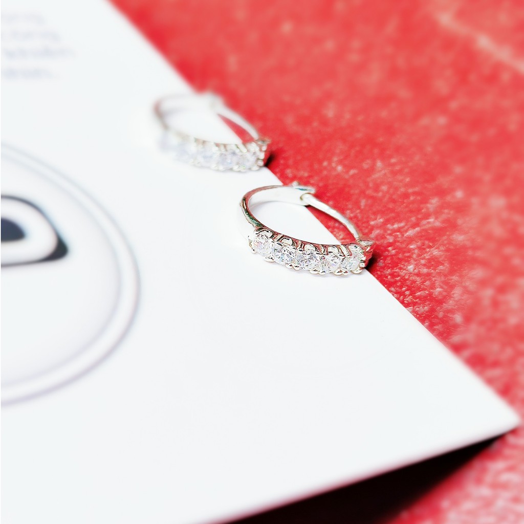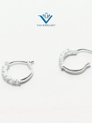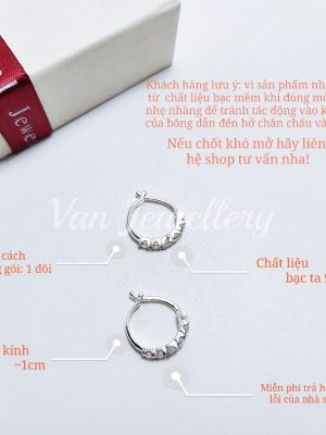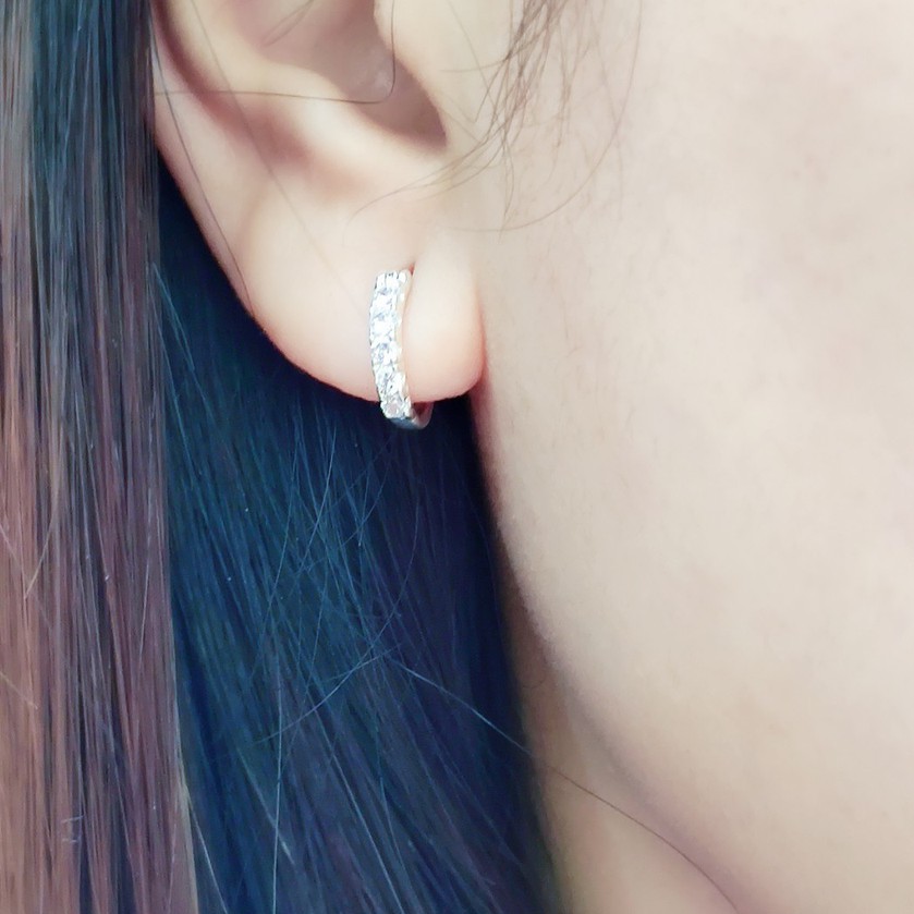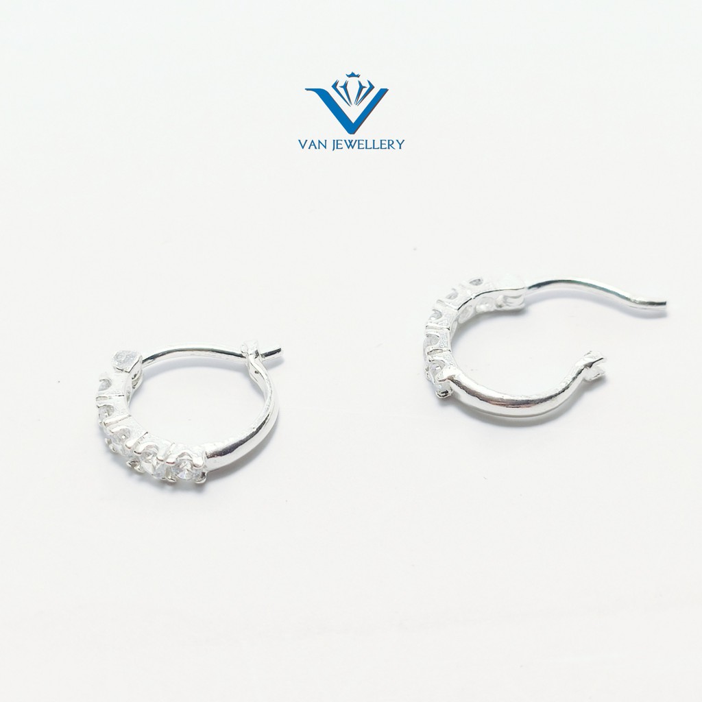 Khuyên tai bạc khuyên tròn sát tai đính đá bạc ta Van Jewelry V10566 (giá 1 đôi)