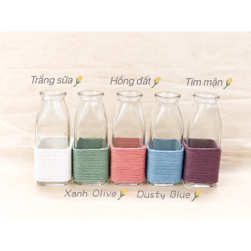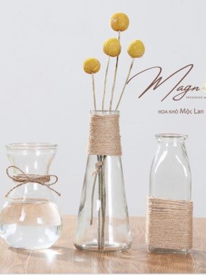 Lọ thủy tinh này tớ mua lẻ về tự quấn dây trang trí cho các cậu. Tớ ko sỉ chai lọ như các shop sỉ thủy tinh ạ! Nên mặt hàng này tính ra tớ mua hộ khách để cắm hoa chứ ko kinh doanh về thủy tinh T o T
