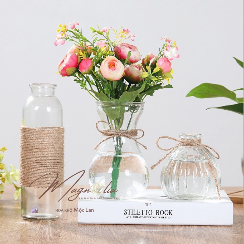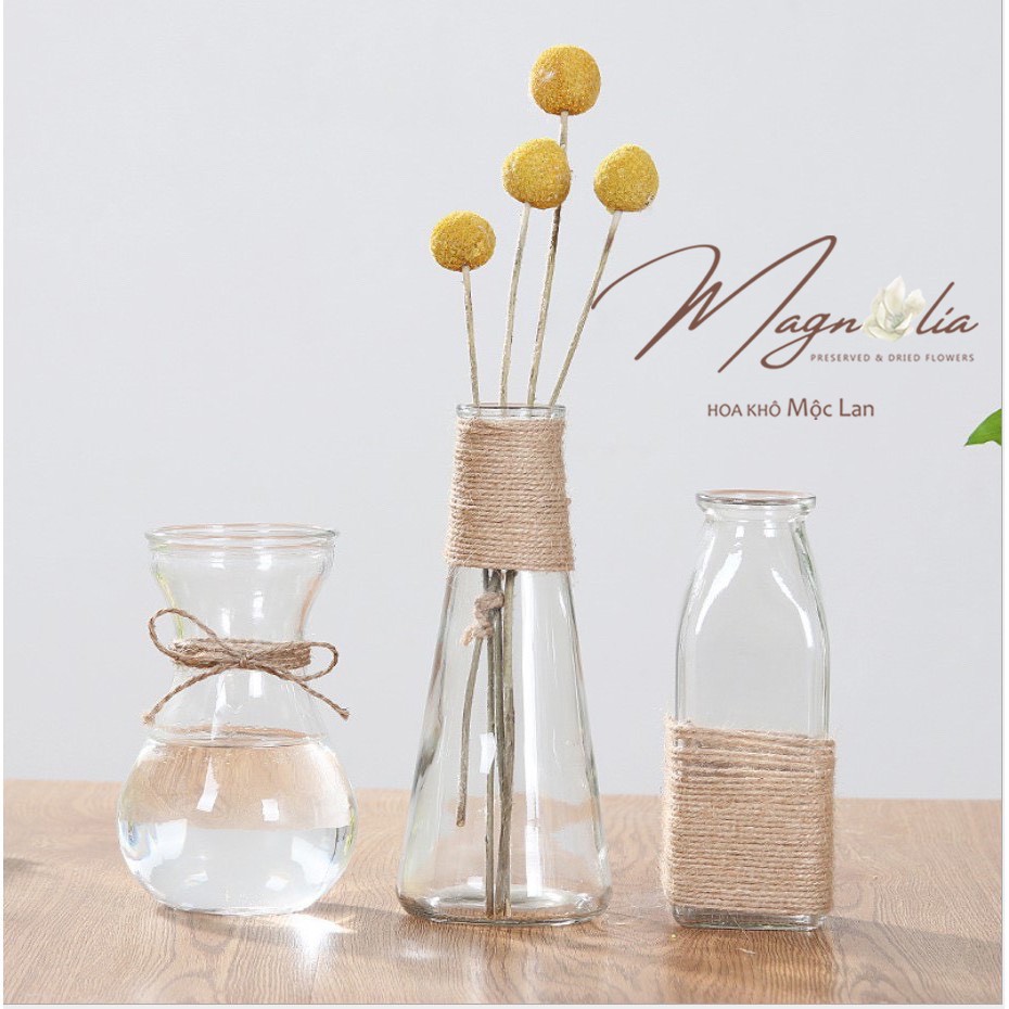 Lọ thủy tinh trang trí dây thừng cắm hoa phong cách Bắc Âu vintage