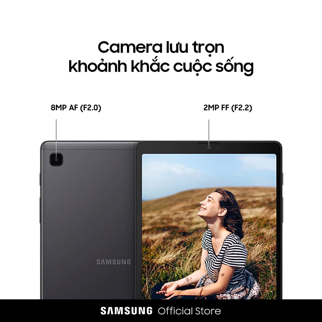 Thuận tiện nhưng vẫn đầy phong cách. Galaxy Tab A7 Lite chỉ mỏng 8.0mm và nặng 371g, gọn và nhẹ trong túi xách và luôn đồng hành cùng bạn trên mọi hành trình. Thỏa sức thể hiện cá tính với hai màu sắc Xám Vũ Trụ và Bạc Ngân Hà.