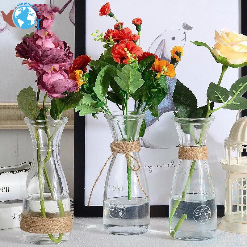 [Mã LIFE15820K giảm 10% đơn 59K] Bình Bông Lọ Hoa Thủy Tinh Eo Nhỏ+TẶNG KÈM DÂY DỪA TRANG TRÍ