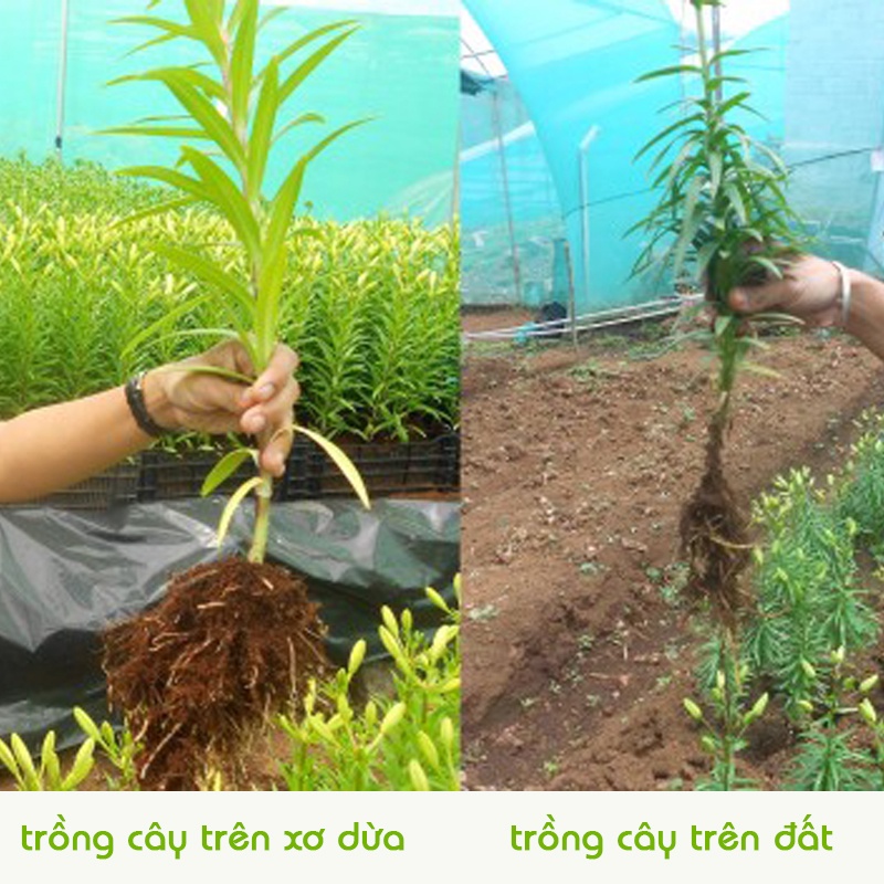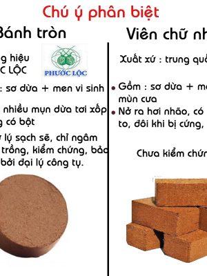 Thành phần: 80% là MỤN DỪA được nghiền nhuyễn (EC giao động trong khoảng 0.22 Ms/cm – pH = 5.5 – 6.5) – 20% còn lại là Men Vi Sinh cao cấp + Chất Dinh Dưỡng HỮU CƠ AN TOÀN (Giấy Kiểm định do VinaControl cấp)