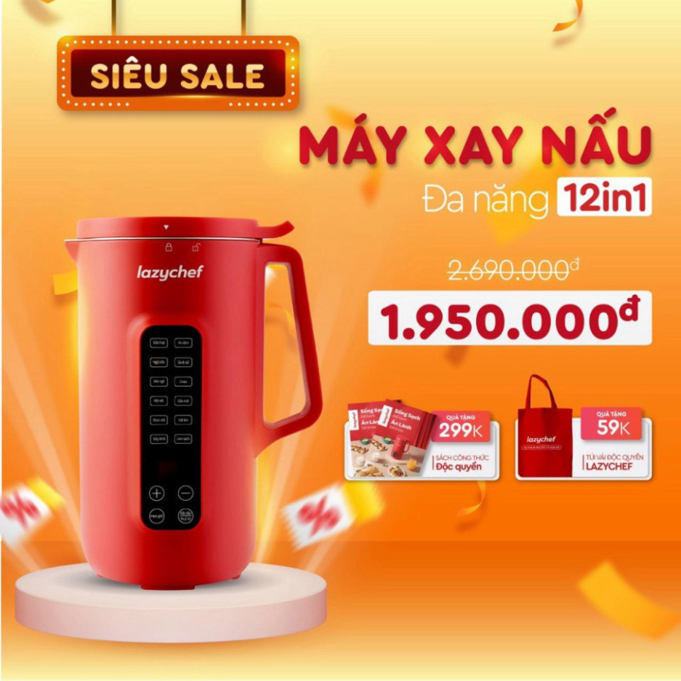 Máy Làm Sữa Hạt 12in1 Lazychef LC-03SH, Xay Nấu Đa Năng, Công Nghệ Sấy Khô Tự Động, Dung tích 1000ML.