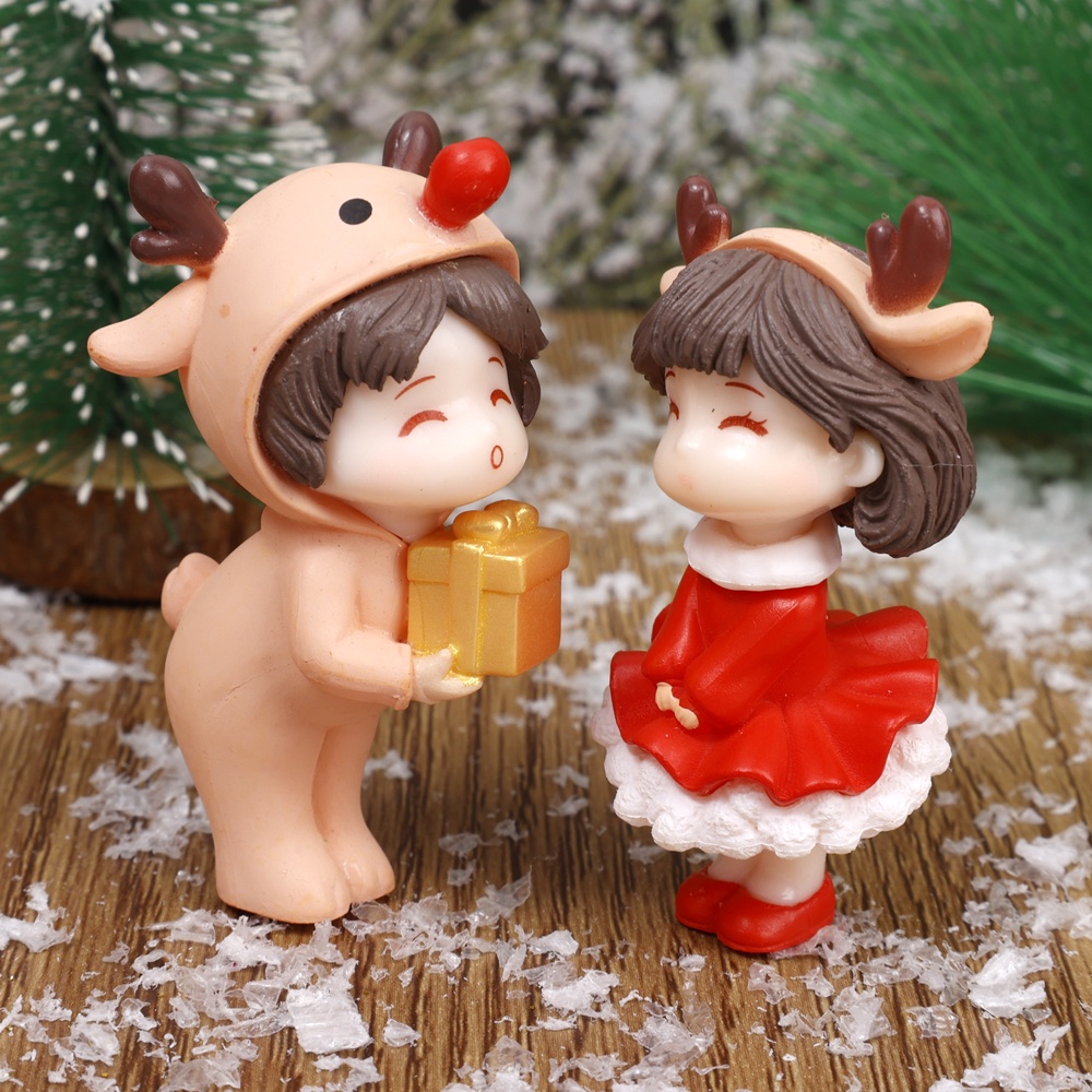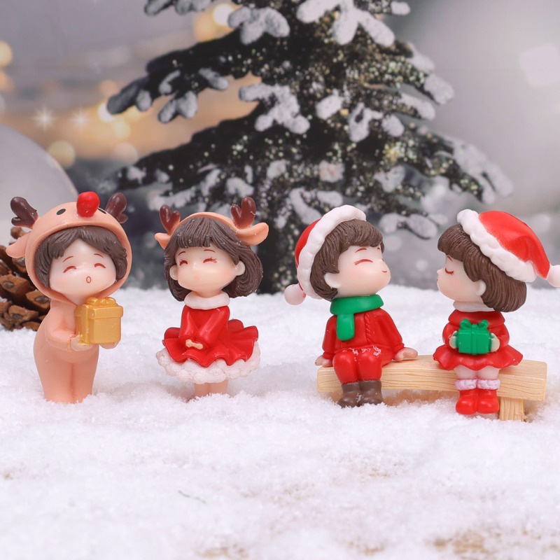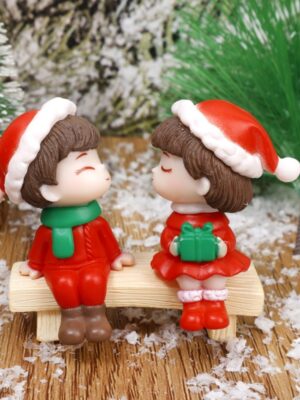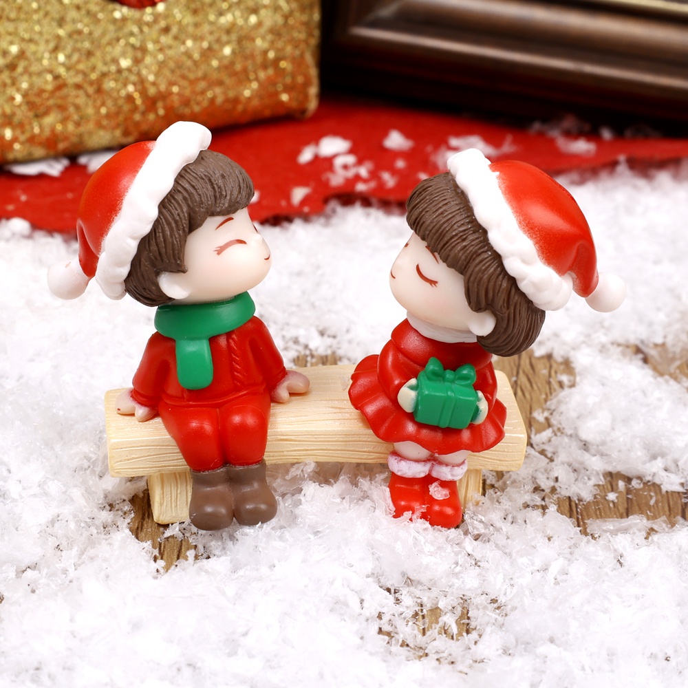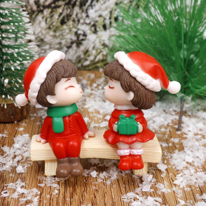 Kích thước: Cặp đôi Giáng sinh đứng khoảng 3.2 * 5.9cm, cặp đôi Giáng sinh ngồi khoảng 3.2 * 5.2cm, băng ghế khoảng 5.7 * 1.7cm