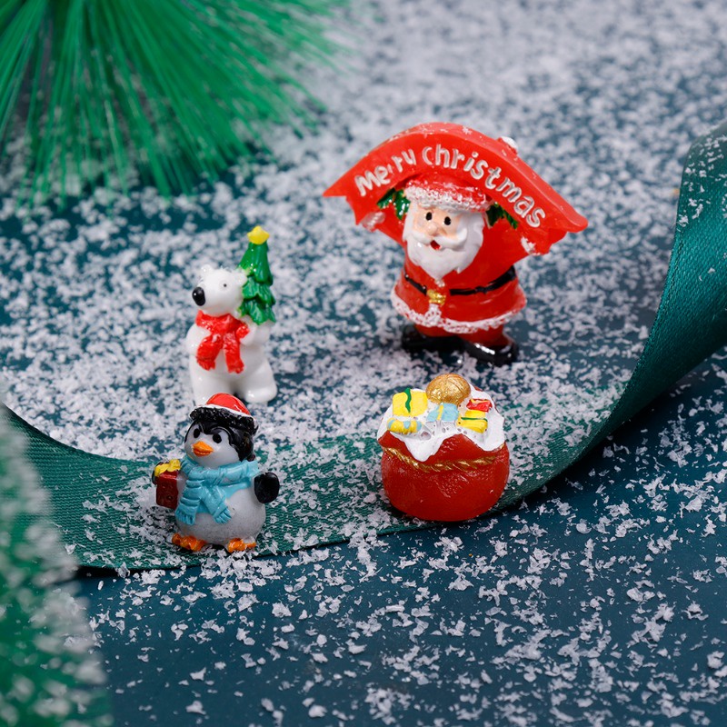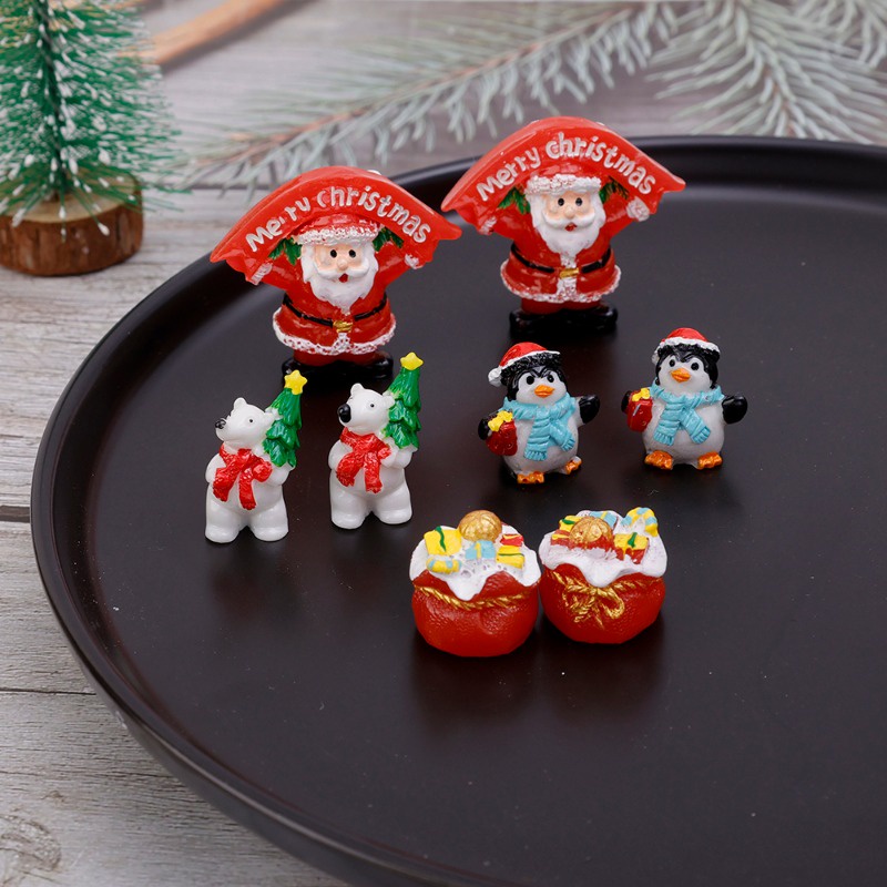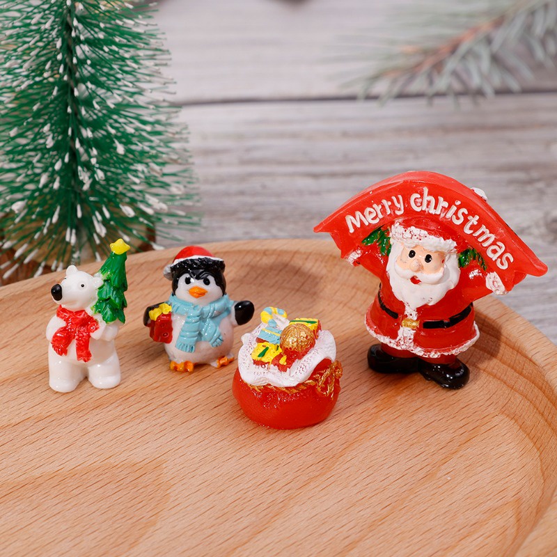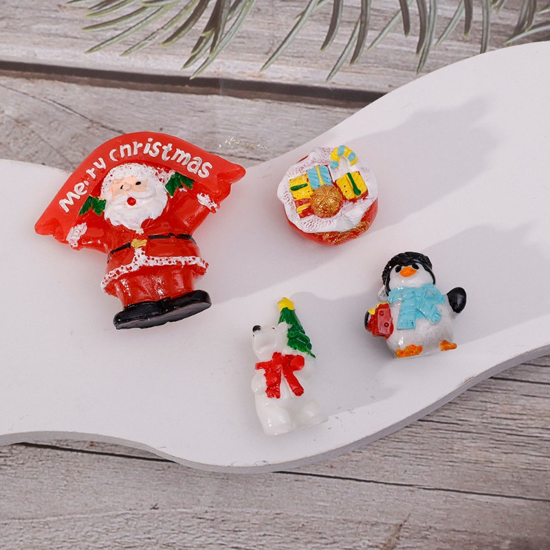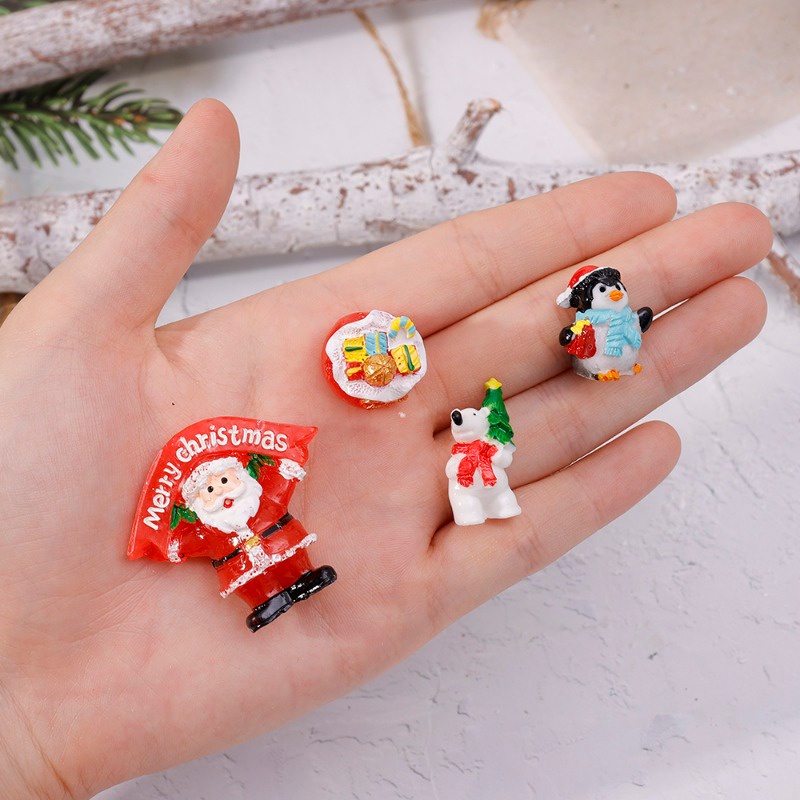 Kích thước: Ông già Noel 4 * 4cm, chim cánh cụt khoảng 2 * 2cm, gấu bắc cực 2,5 * 1,3cm, quà khoảng 1,8 * 1,8cm