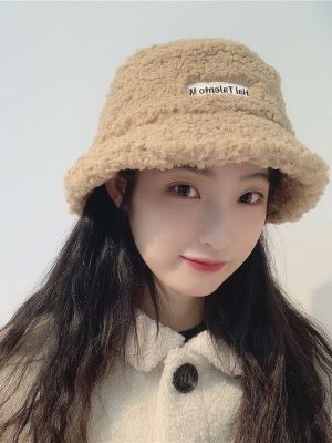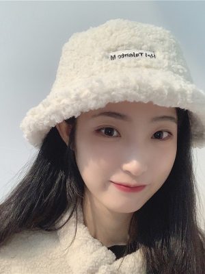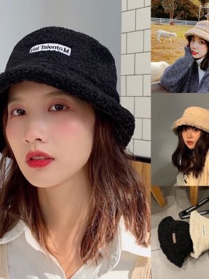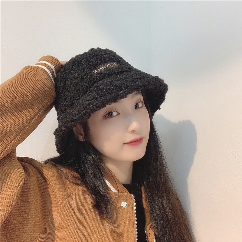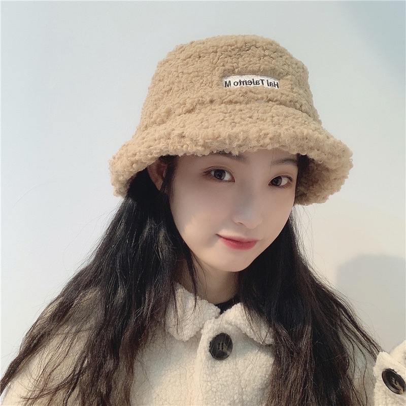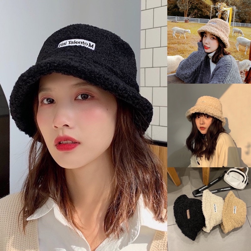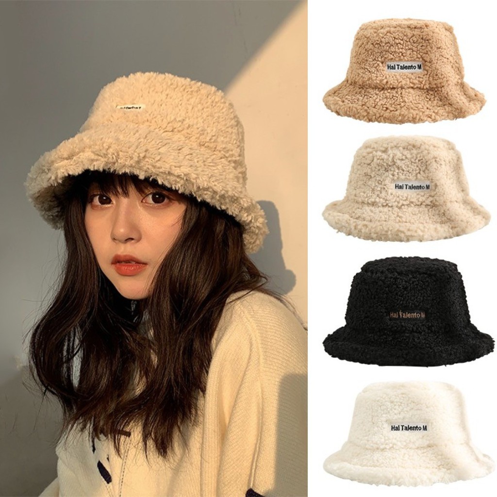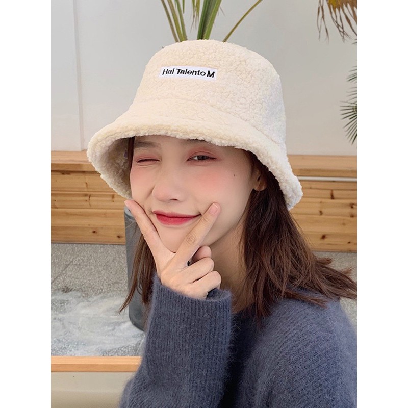 Mũ Lông cừu Bucket Retro Phong Cách Hàn Quốc Mũ lông cừu nữ mềm giữ ấm Thu Đông Ulzzang_x000D_