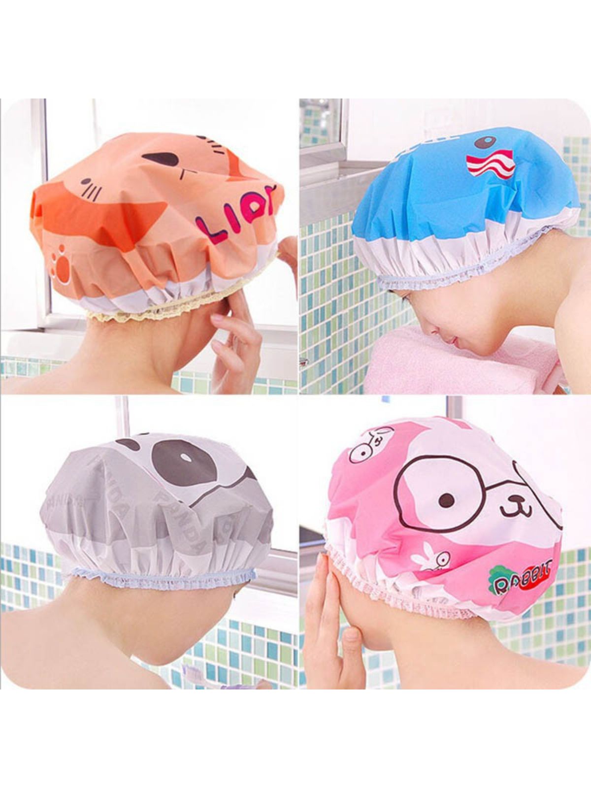 Mũ chụp tóc hình ngộ nghĩnh có thun rất tiện dụng và an toàn, nhỏ gọn, có thể gấp mang đi.