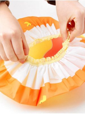 Sử dụng chất liệu PVC gọn nhẹ, màu sắc vui tươi, thiết kế sẵn chun nên sử dụng rất dễ dàng, chỉ cần trùm lên đầu là xong.