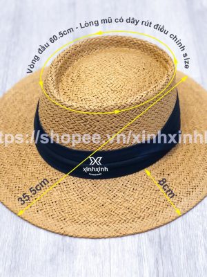 – Chất liệu: Cói tự nhiên cao cấp , được mô phỏng  từ sợi của loài cây có tên Toquilla, một loại sậy rất hiếm và đắt tiền ở đất nước xinh đẹp Ecuador