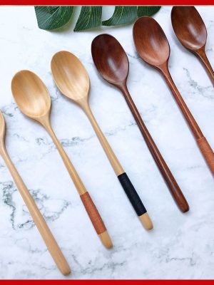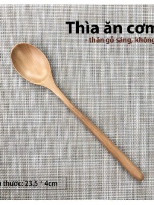 Muỗng gỗ Nhật, thìa gỗ ăn cơm cán dài miệng to phong cách tự nhiên