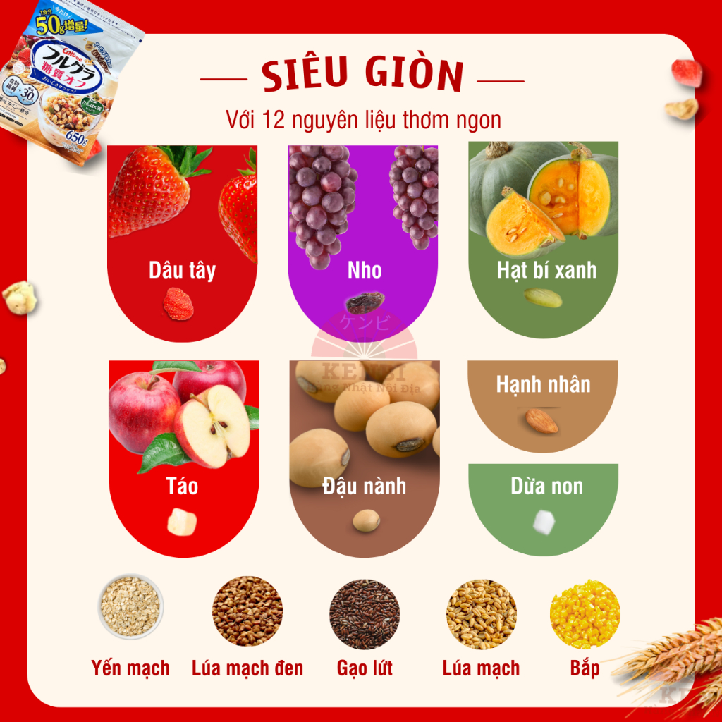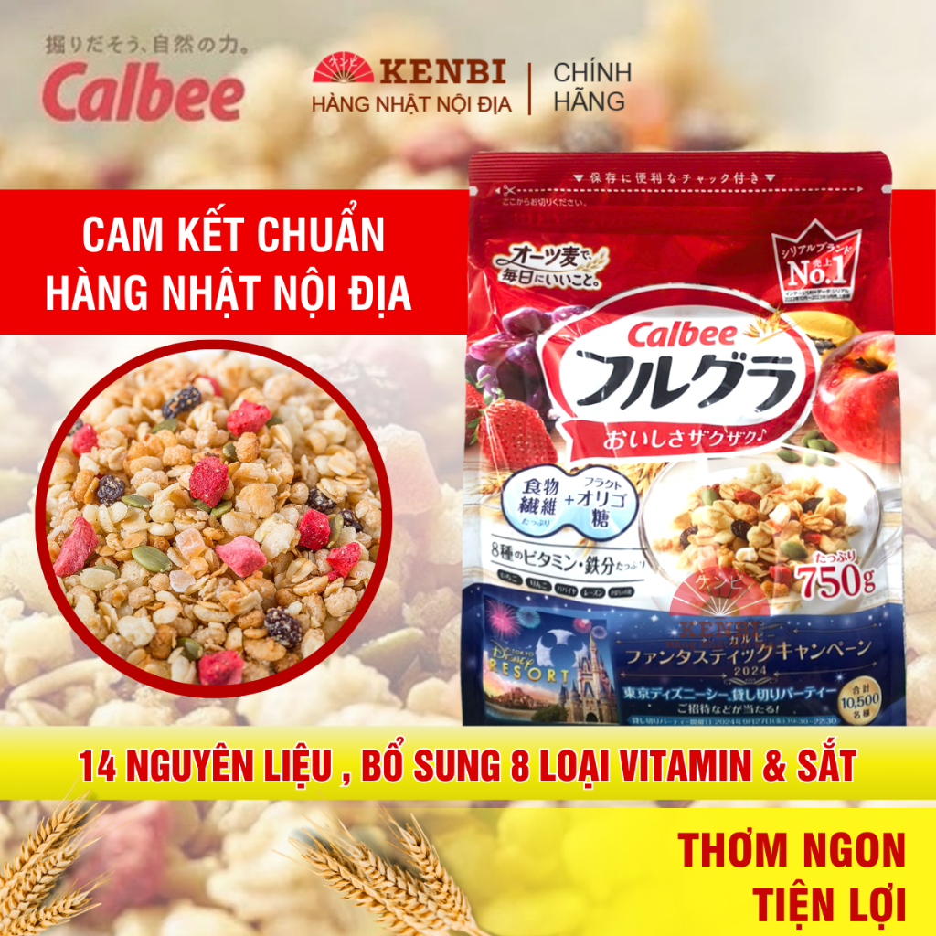 Ngũ cốc Calbee đỏ Nhật Bản, hoa quả & hạt sấy khô ăn sáng đầy đủ dinh dưỡng chuẩn nội địa Nhật