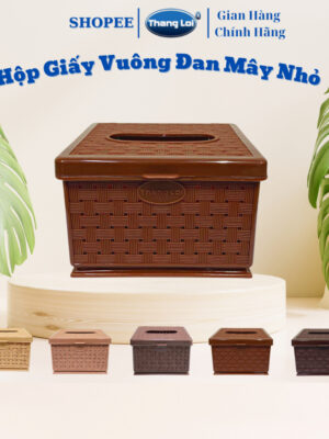 Hộp đựng khăn giấy vuông, Hộp đựng giấy đan mây size nhỏ dành cho nhà hàng, quán ăn